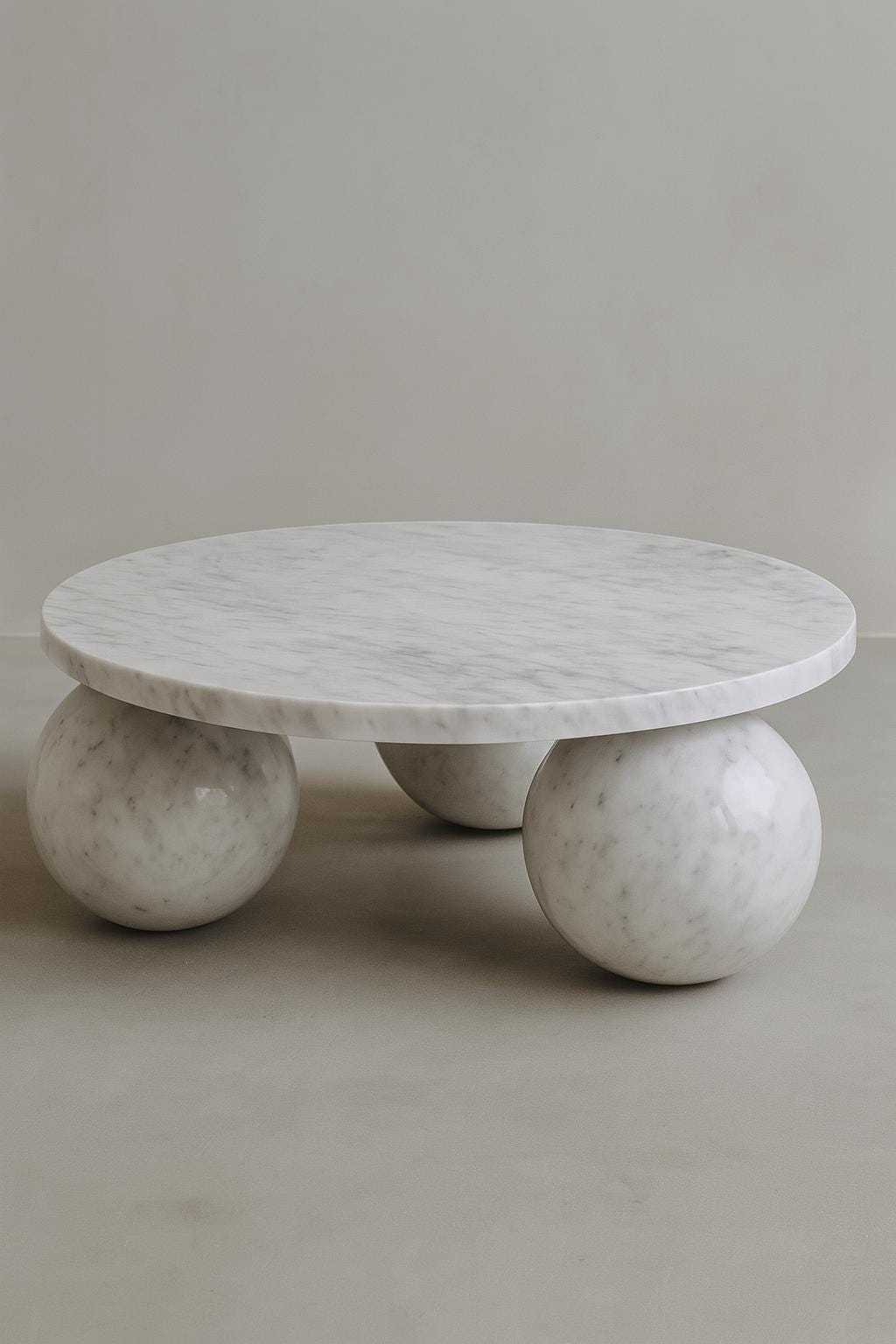 Round White Marble Coffee Table – Sculptural Ball Leg Design | Luxury Handmade Center Table