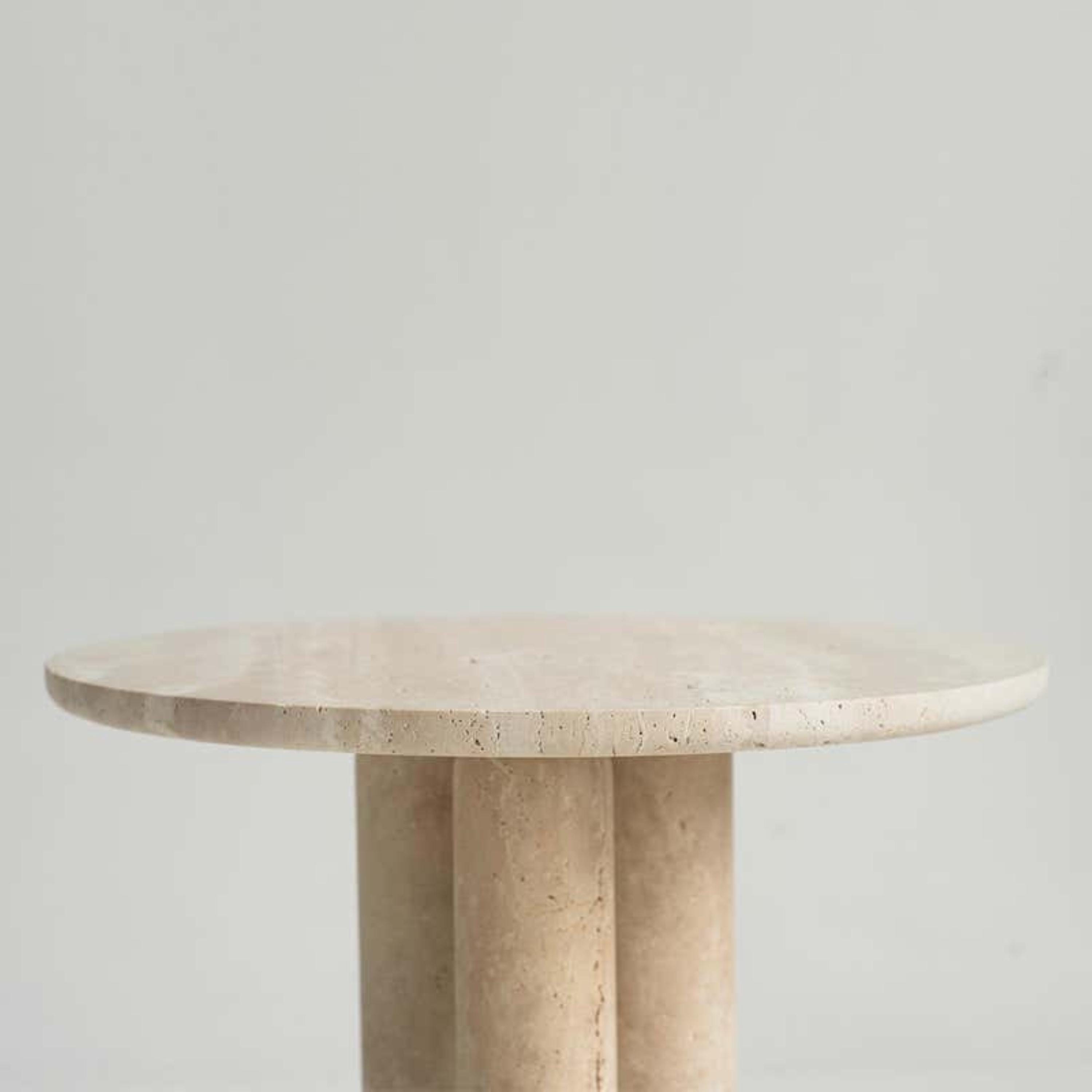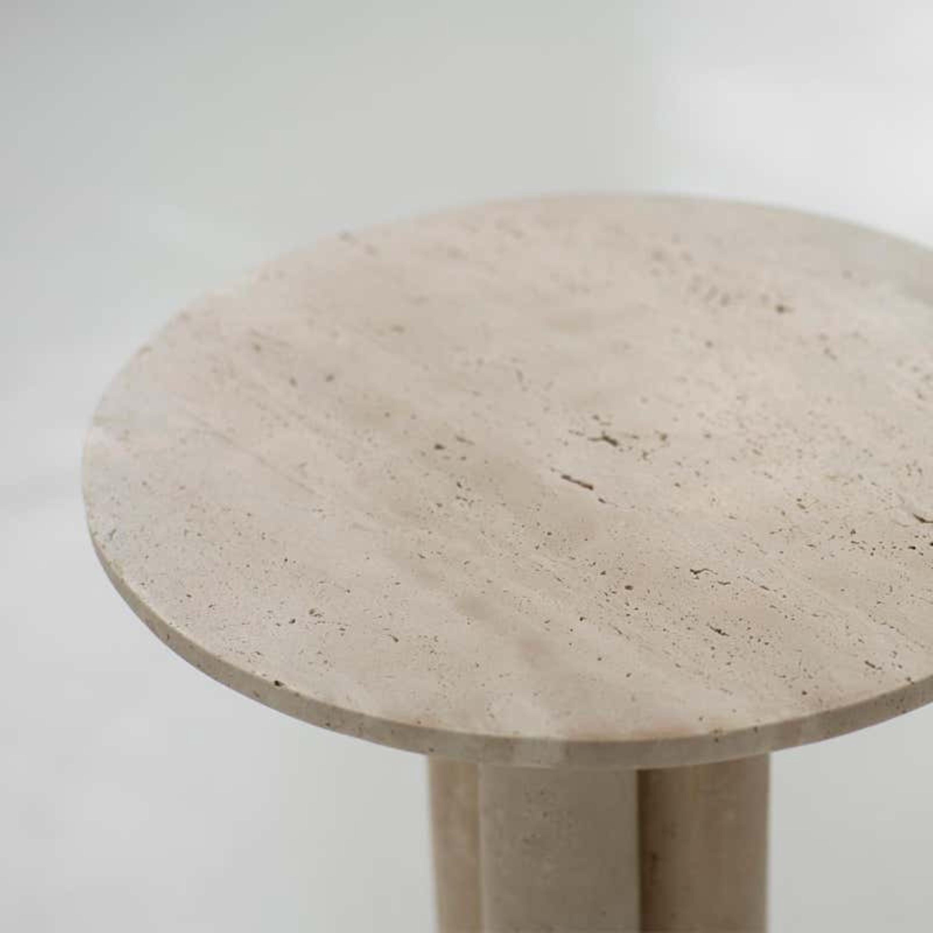 Handcrafted from natural travertine, each table showcases subtle tonal variations, organic textures, and unique veining that make every piece truly one of a kind. The soft beige hues effortlessly complement neutral, contemporary, wabi-sabi, and modern interiors.