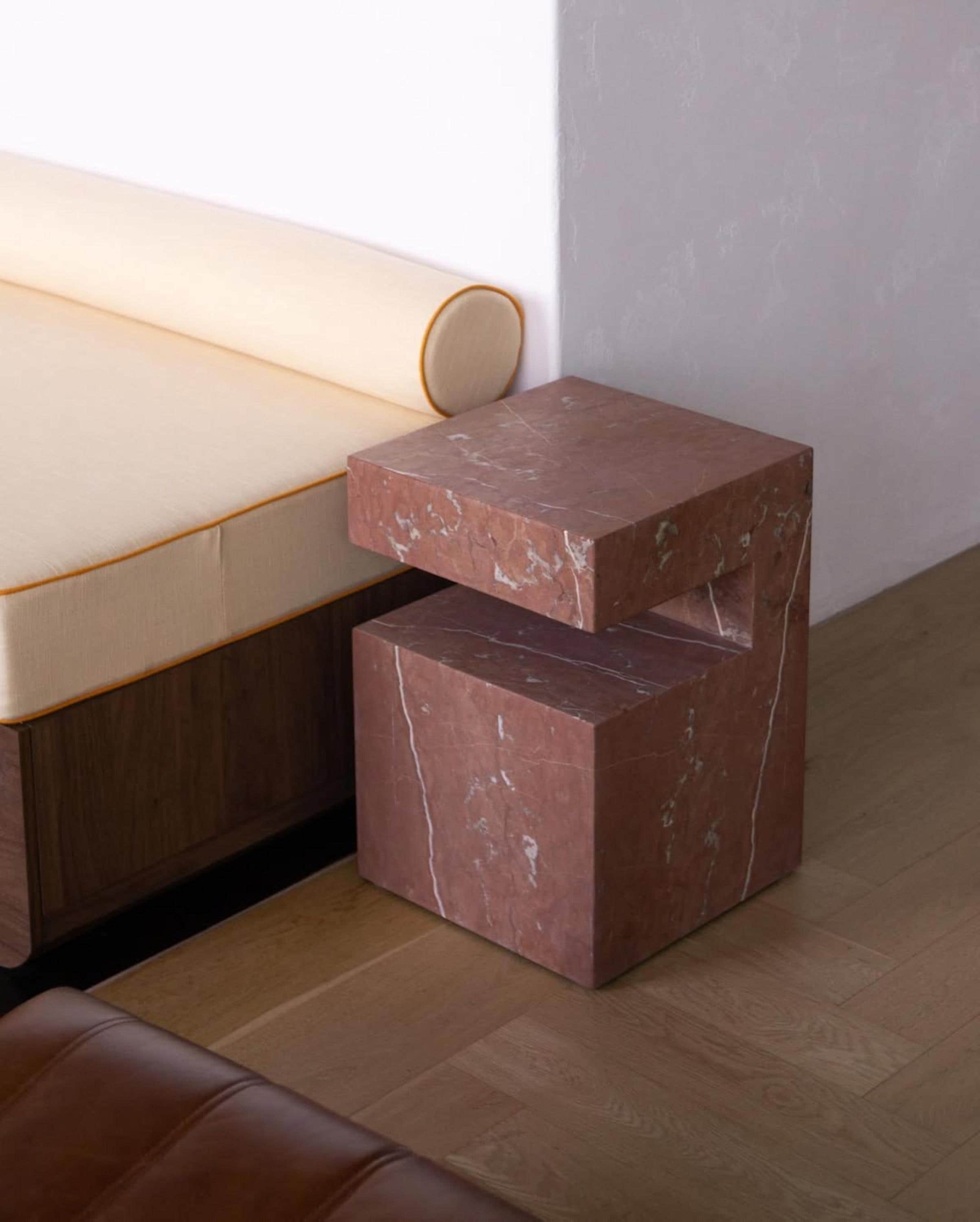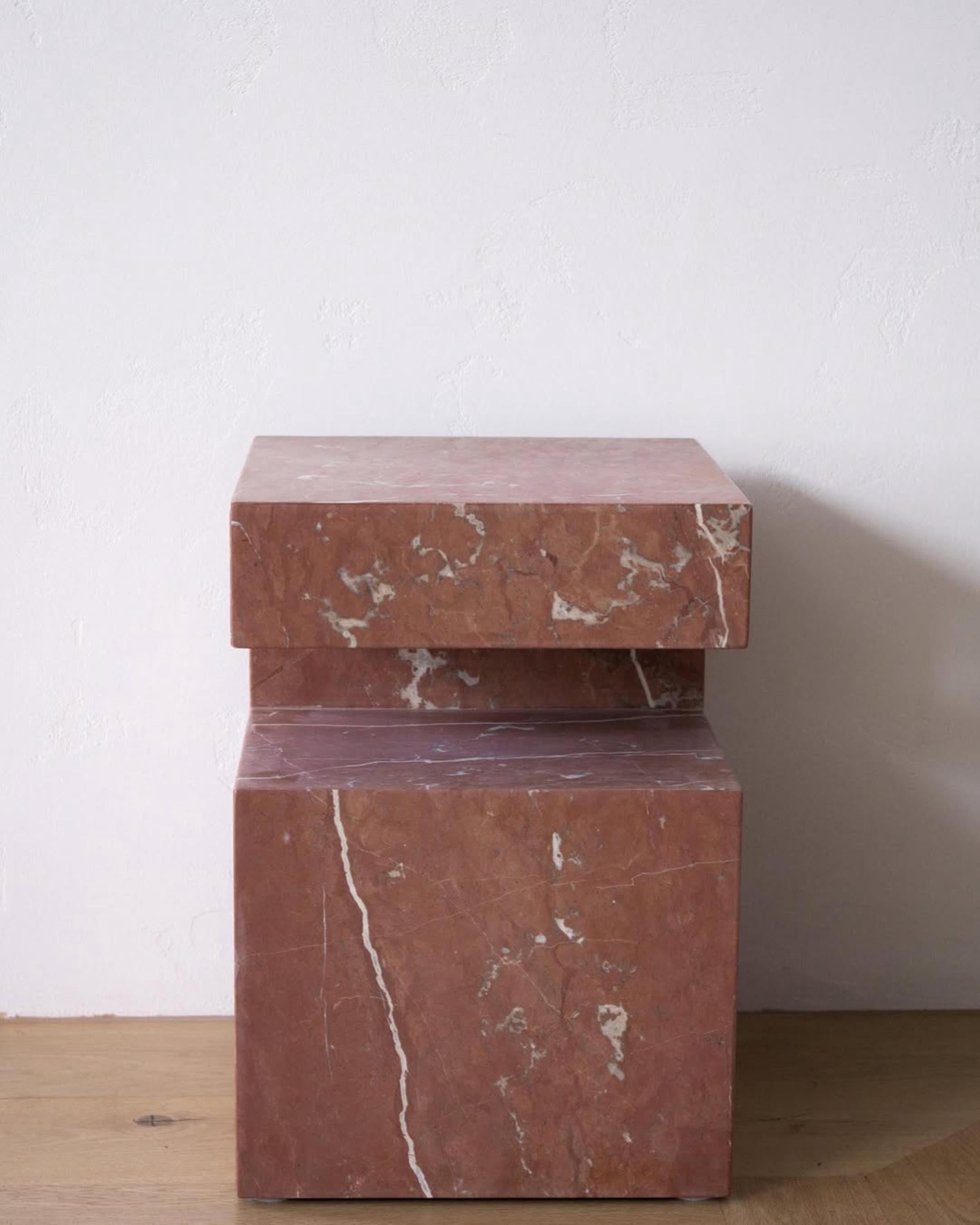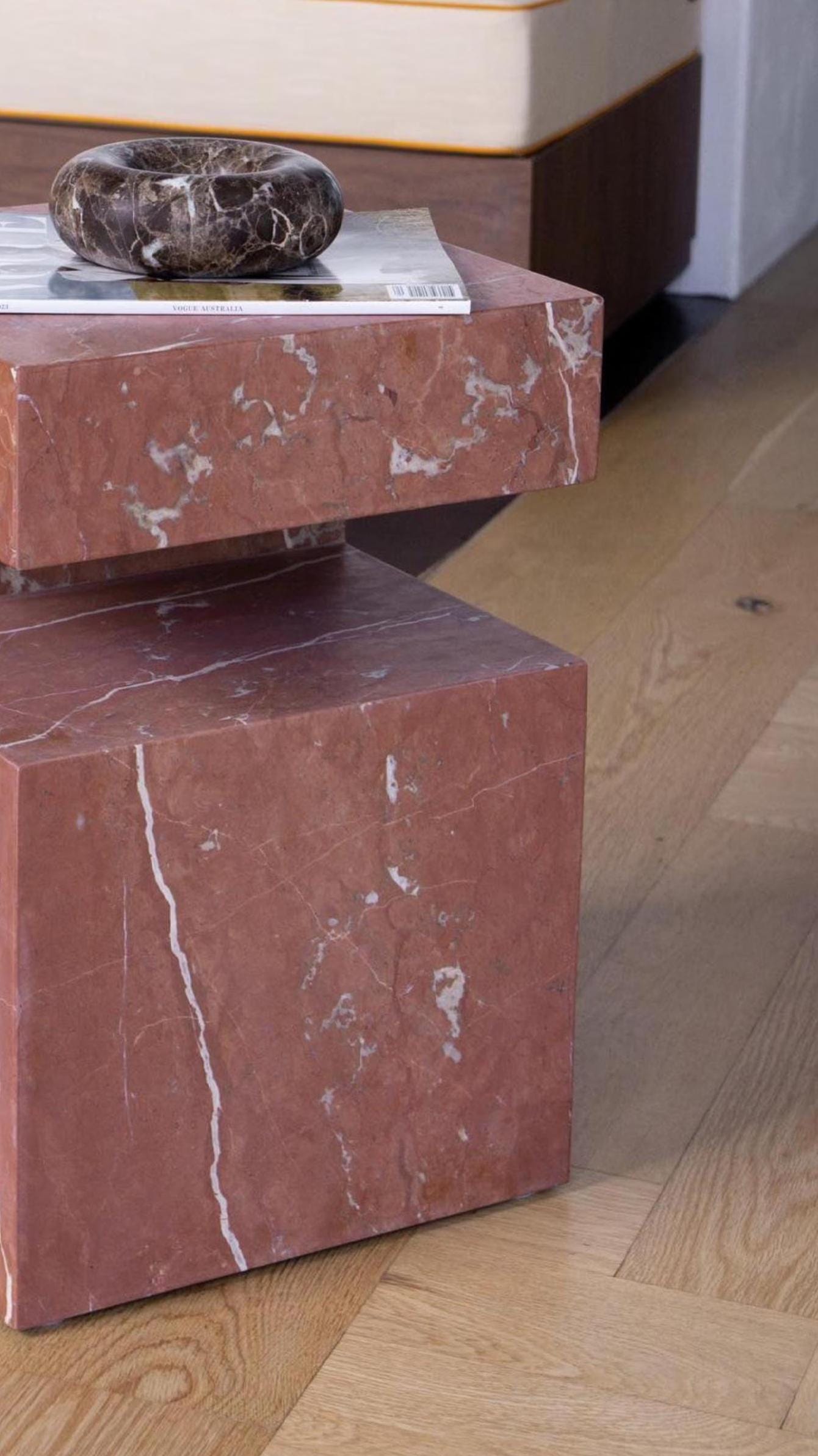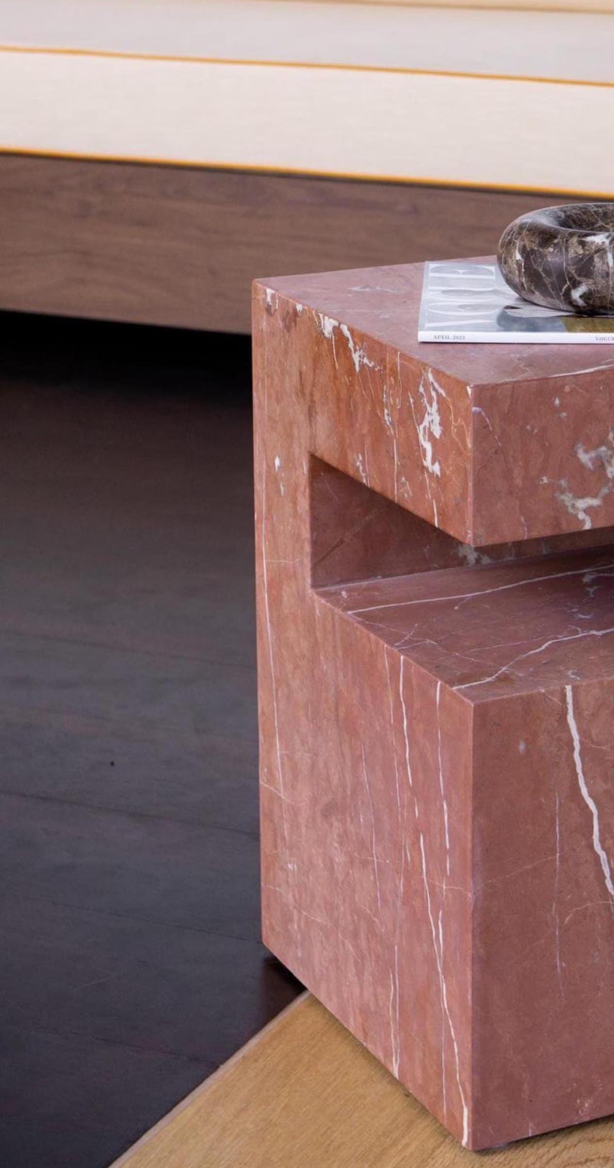 Embrace the beauty of simplicity with this Minimalist Red Marble Side Table, a perfect balance of geometric design and natural luxury. Carved from a solid block of Italian red marble, this piece showcases deep burgundy tones and fine white veining that make every table one of a kind.