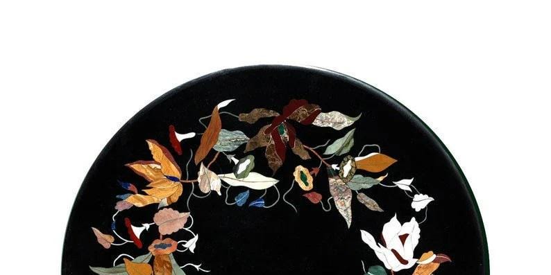 Luxury Black Marble Coffee Table Top, Floral Stone Inlay Pietra Dura Art