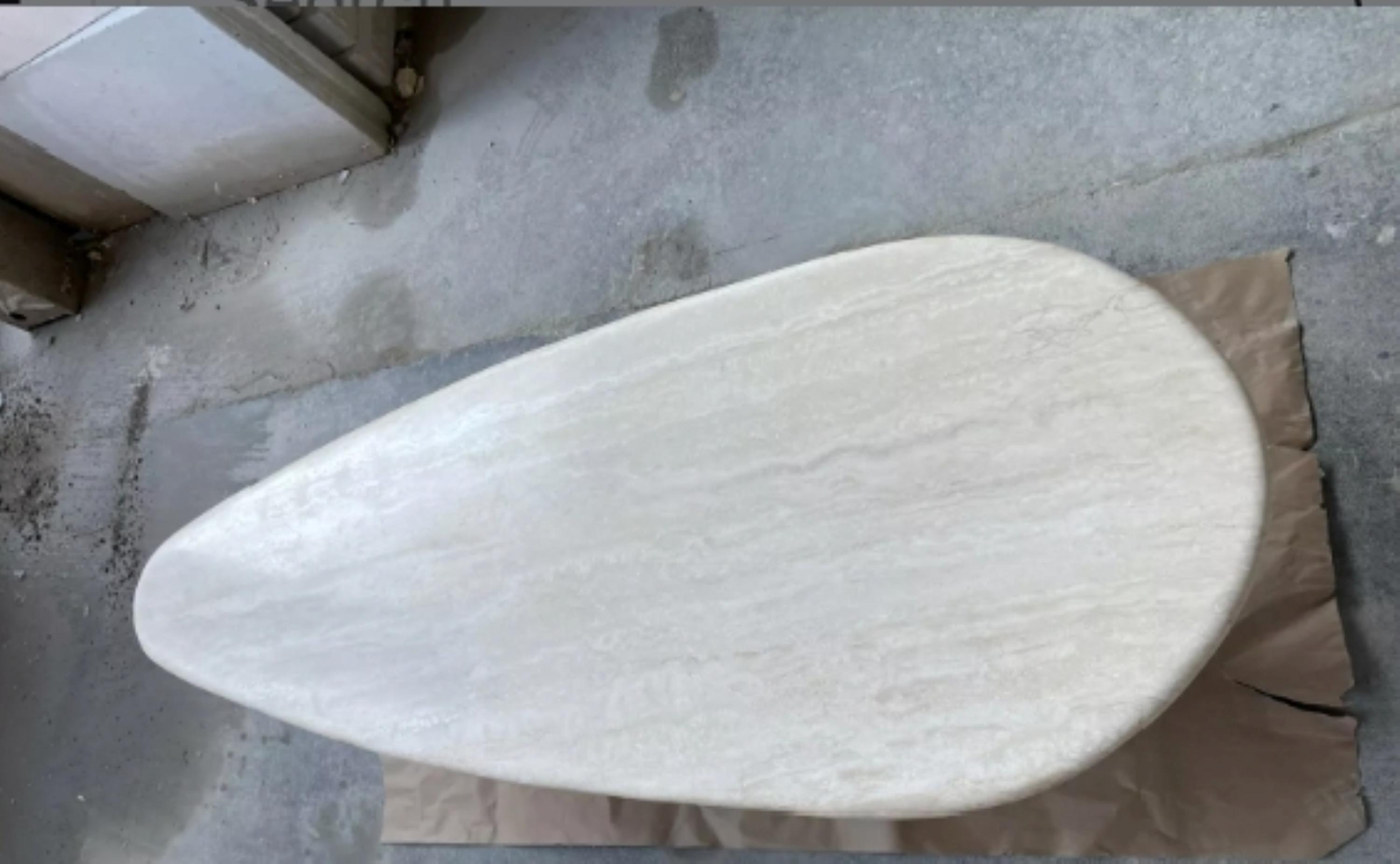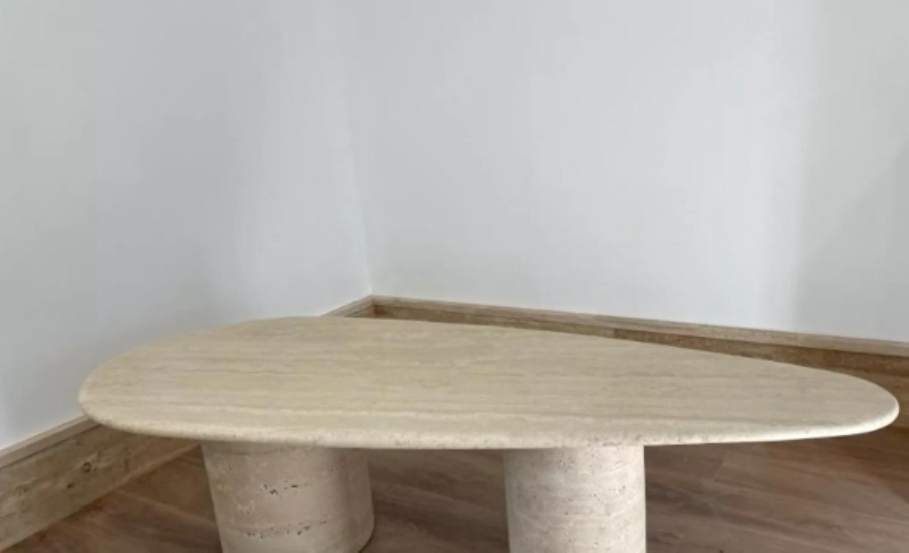 Handcrafted Beige Travertine Marble Coffee Table – Modern Organic Design