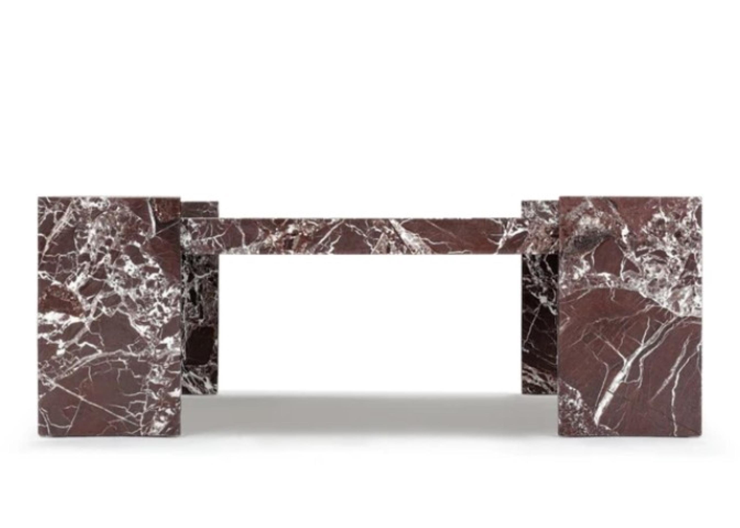 The geometric block-style base and square top reflect a strong architectural aesthetic, balancing strength and sophistication. Perfectly polished to a mirror-like finish, it highlights the marble’s natural depth and texture while adding a sense of permanence to any interior.
