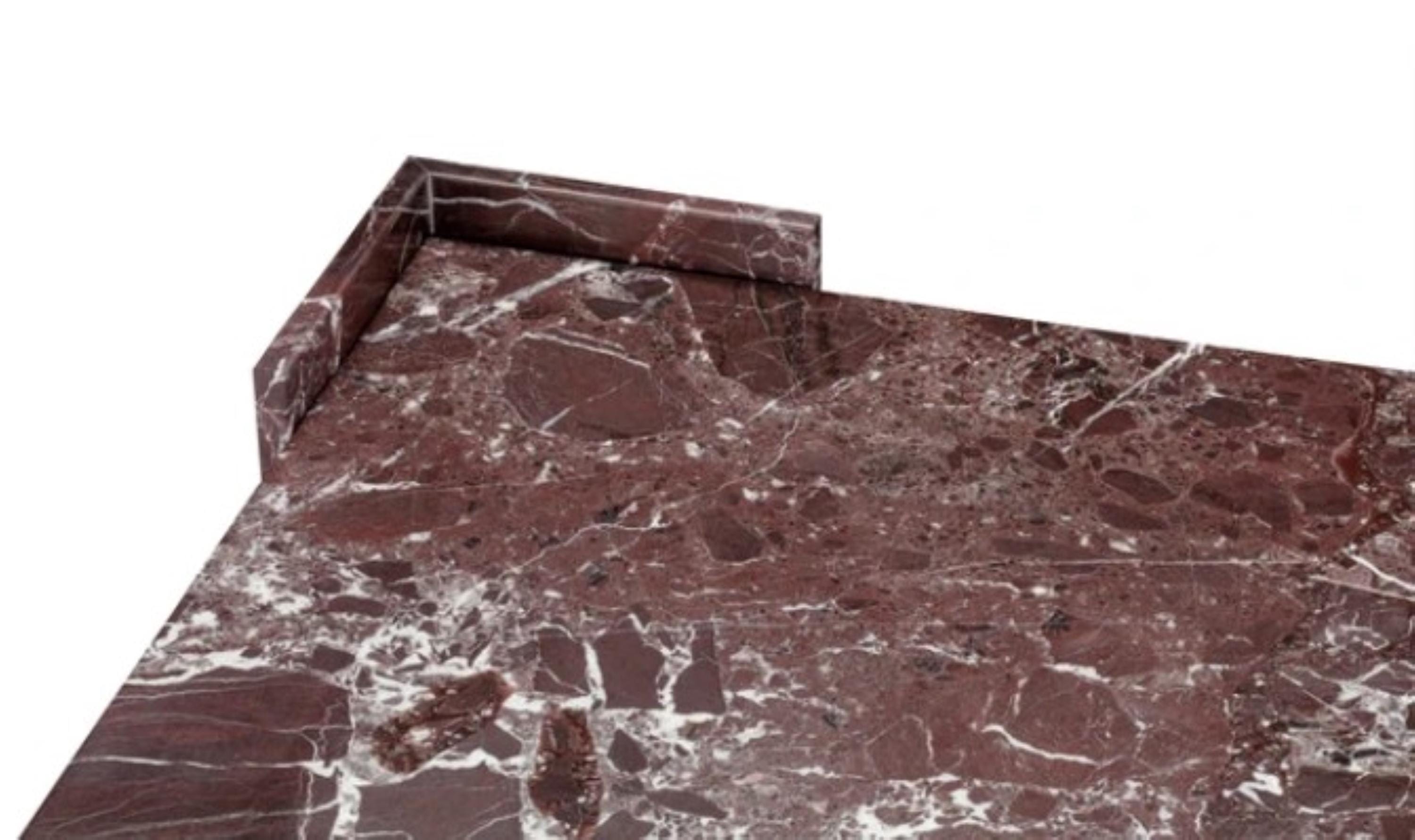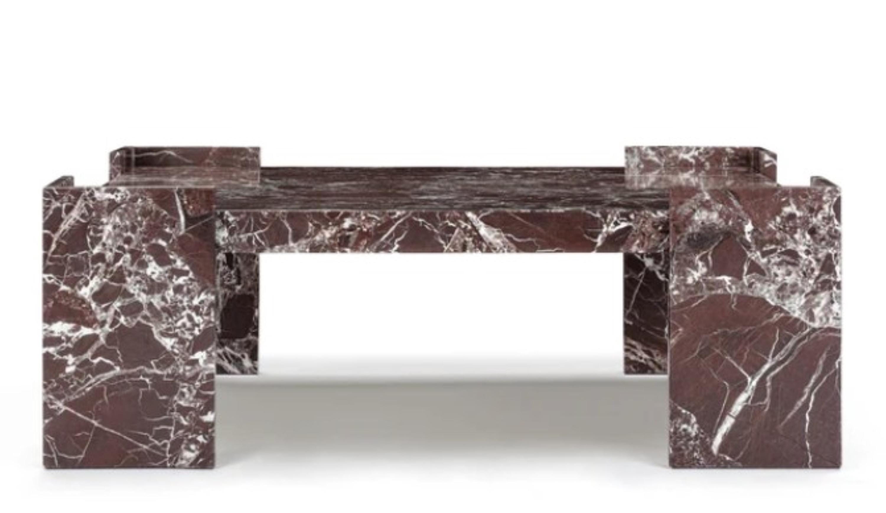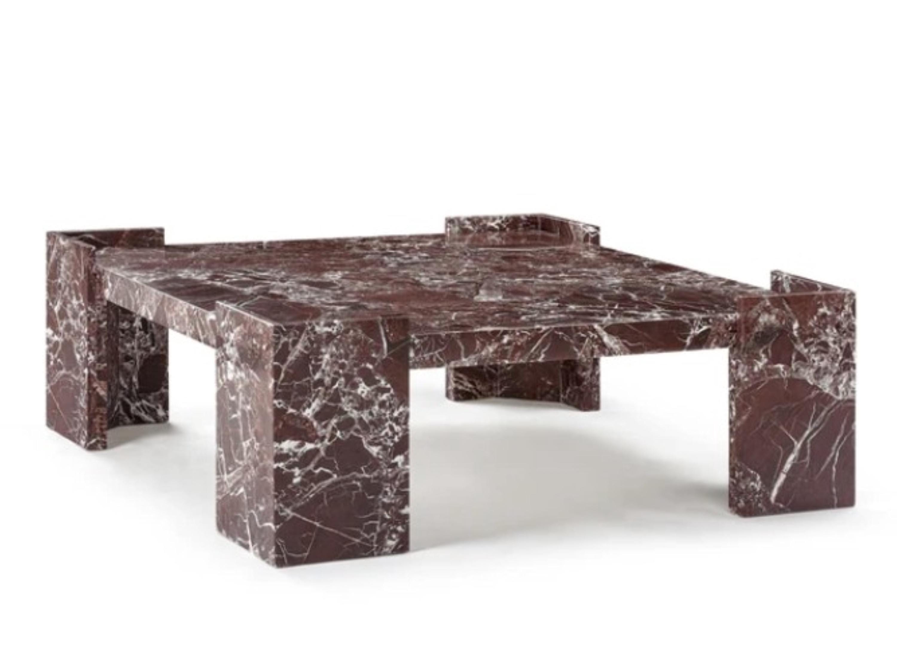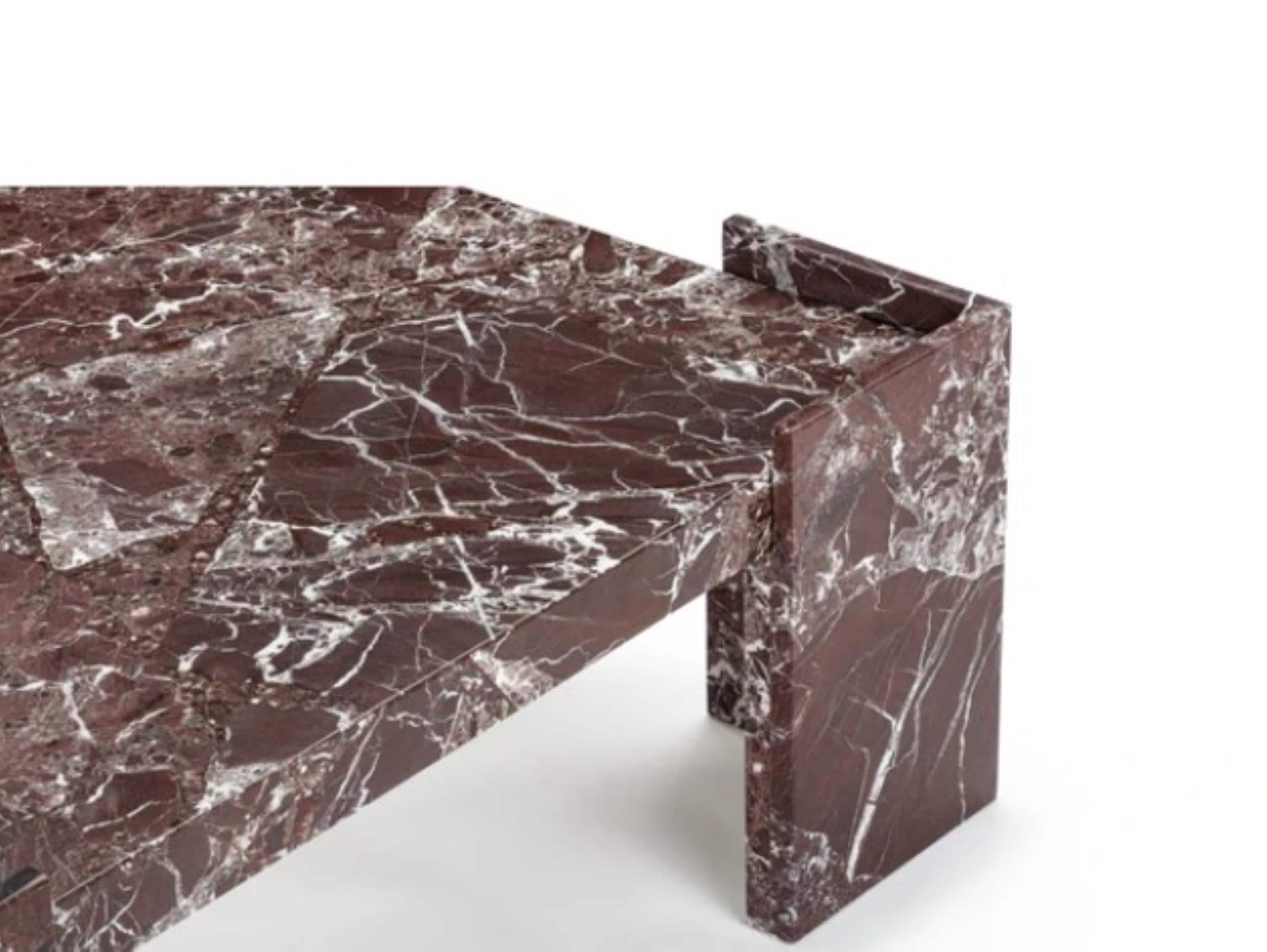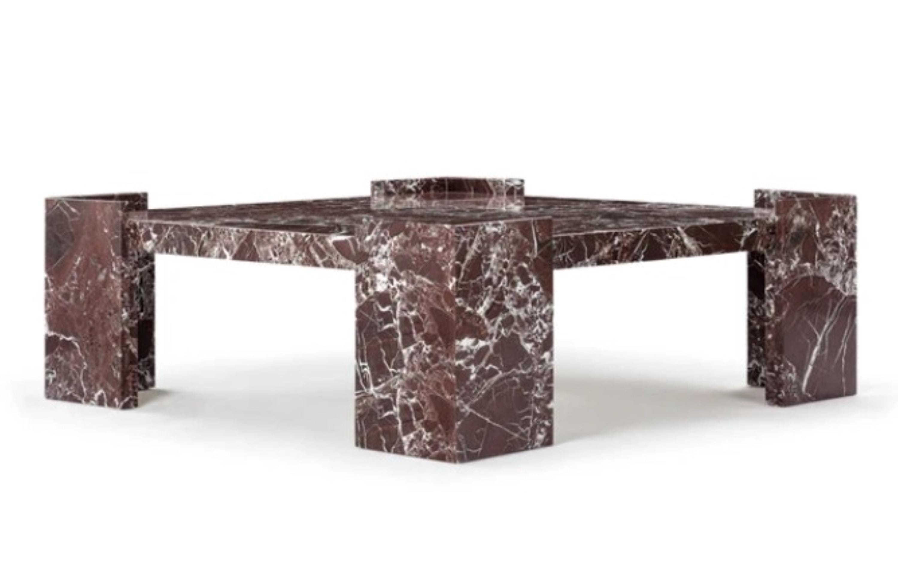 Luxury Rosso Levanto Marble Coffee Table – Handmade Geometric Designer Center Table