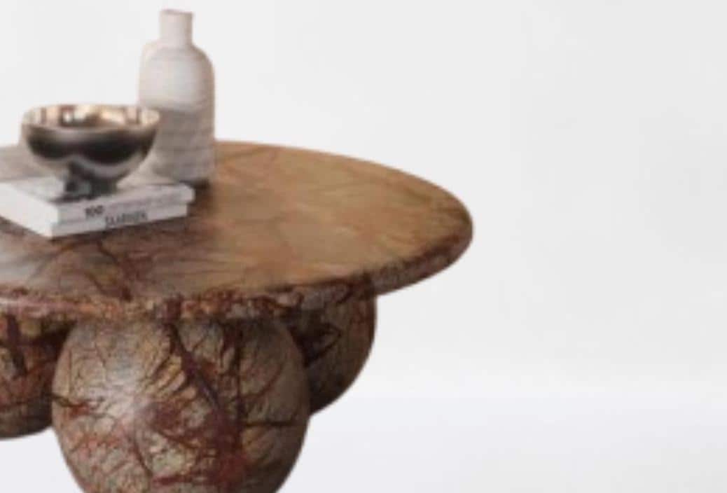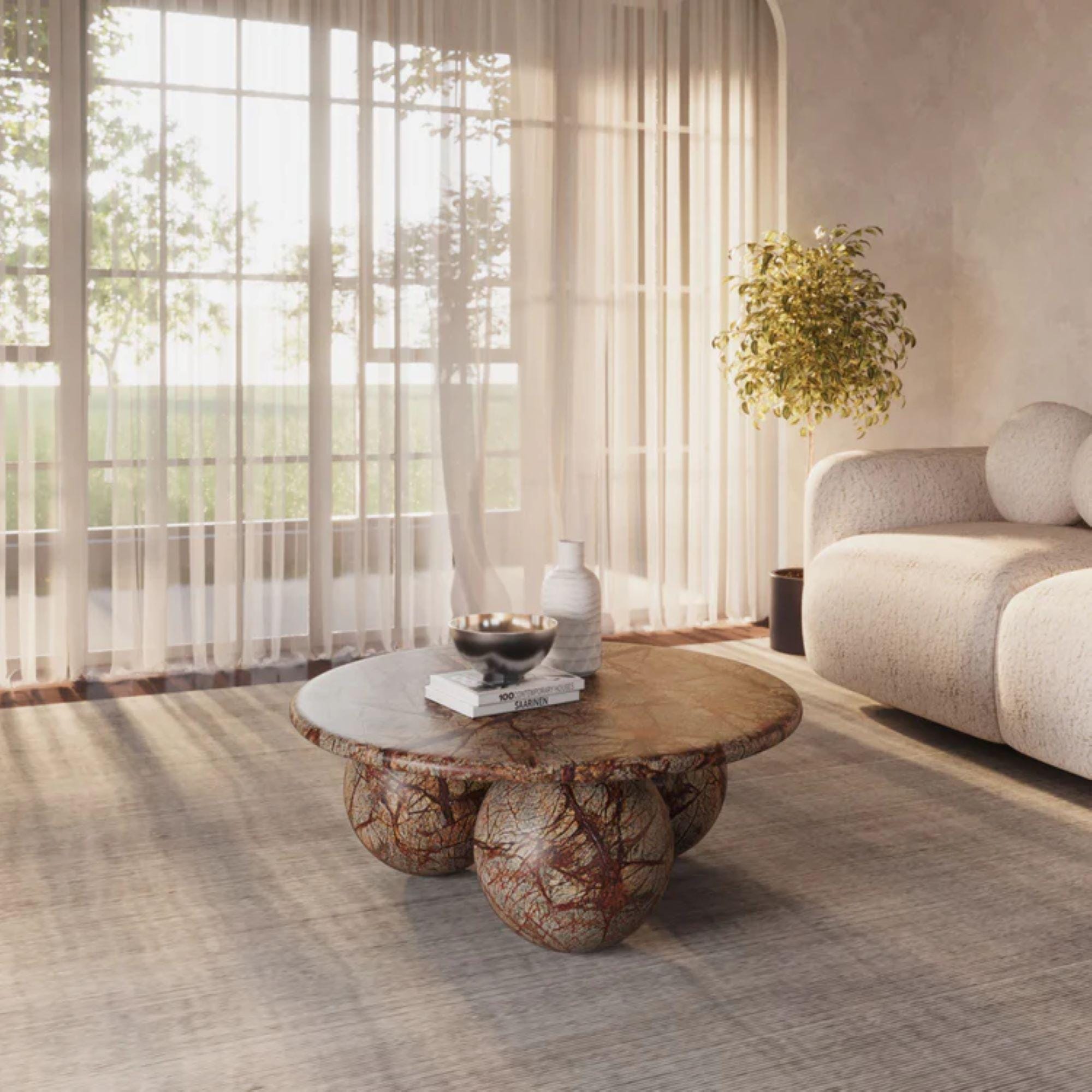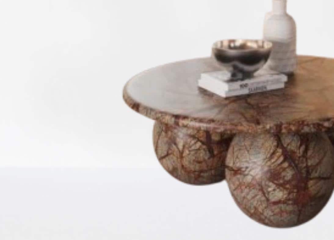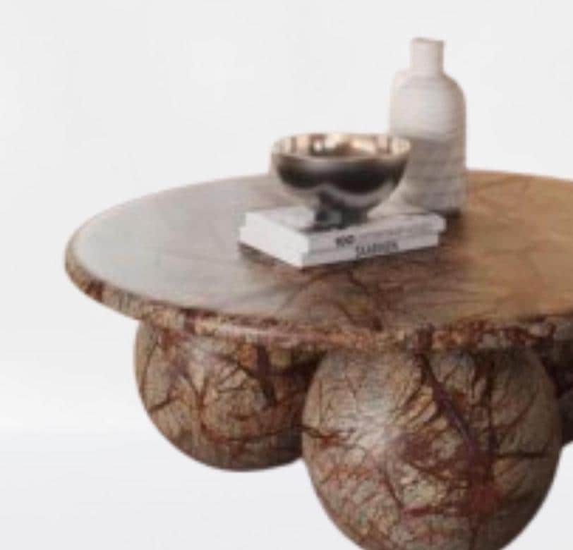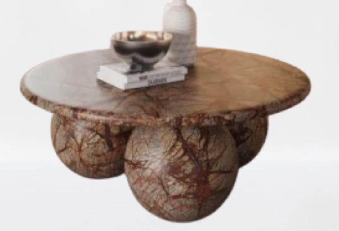 Make a striking statement in your living space with this Sculptural Marble Coffee Table, featuring a smooth round top supported by bold, artful spherical legs. Crafted from richly veined marble in earthy tones, this table combines luxury and organic form with artistic expression.