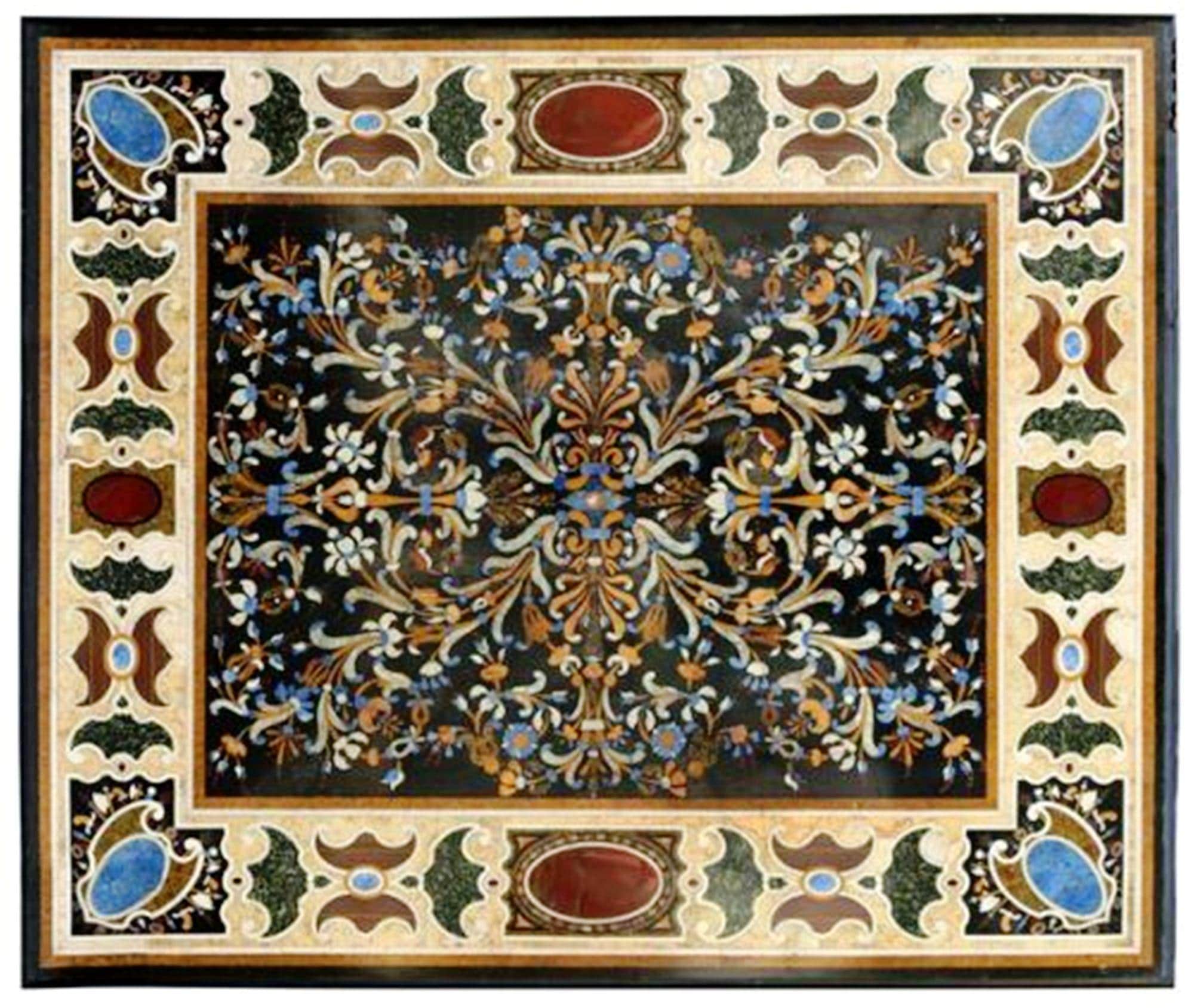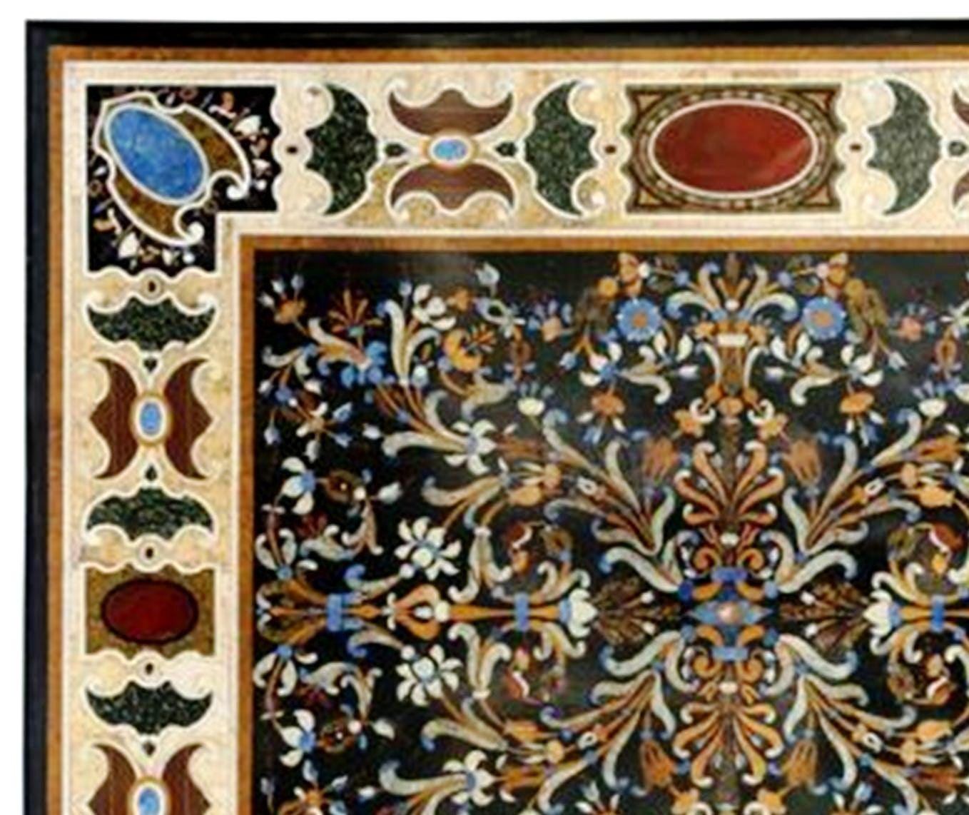 Handmade Pietra Dura Marble Table Top – Floral Stone Inlay Mosaic – Luxury Marble Furniture Decor