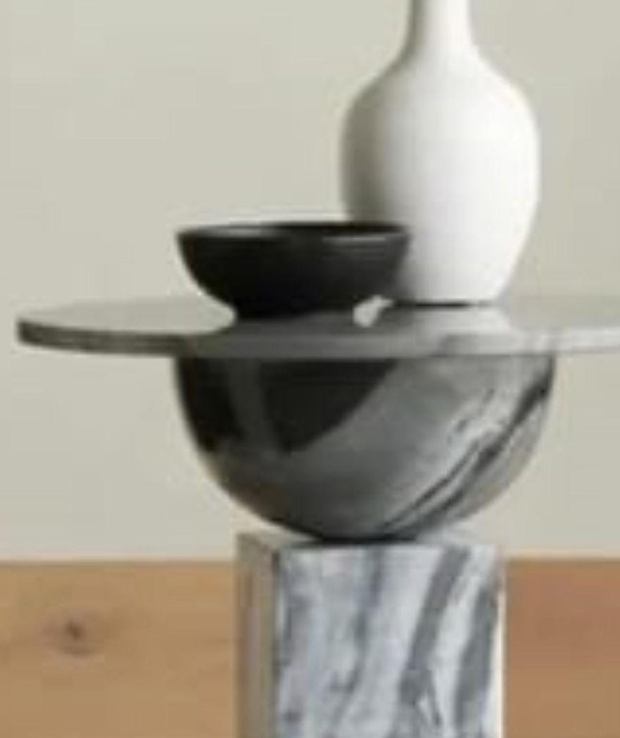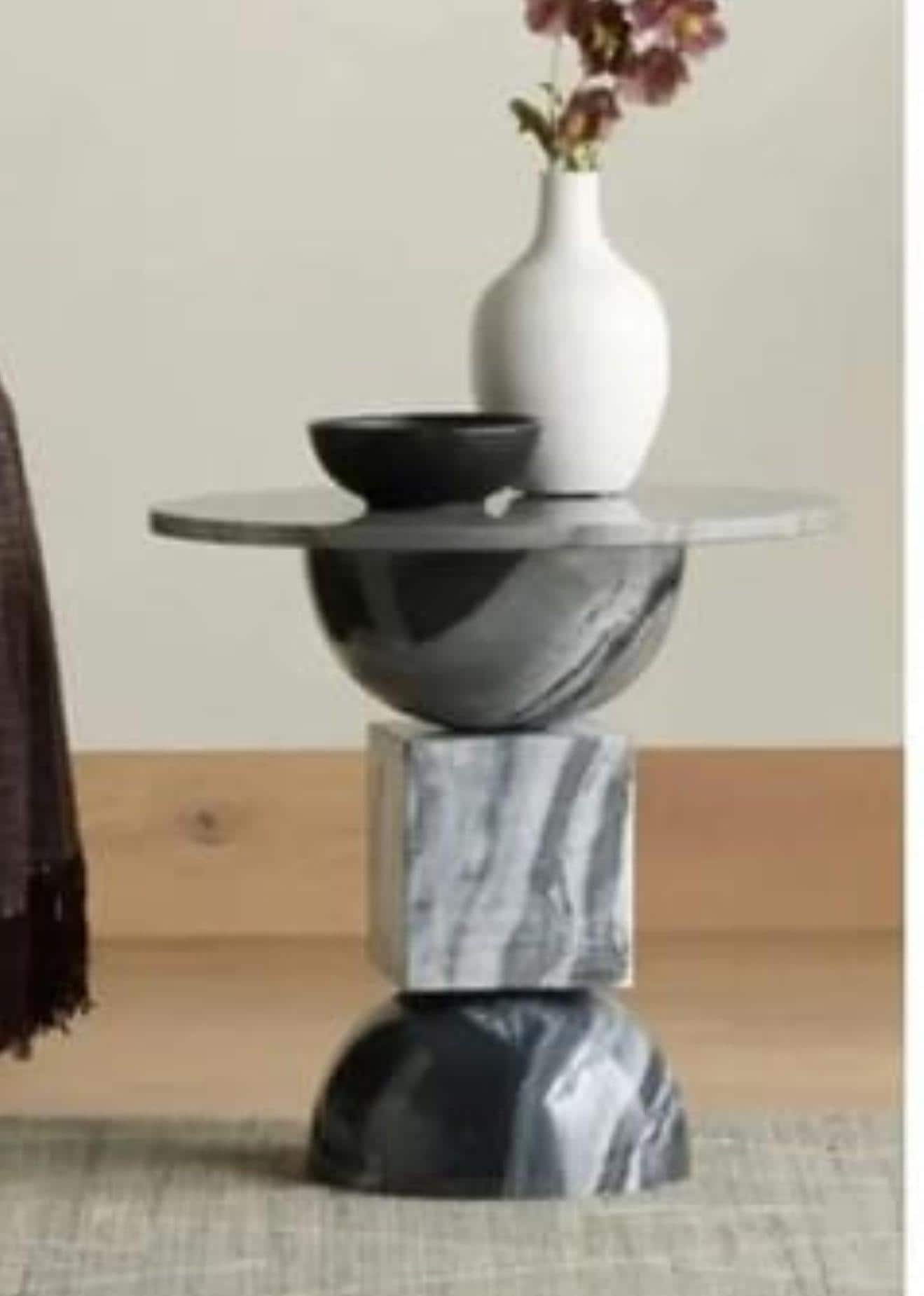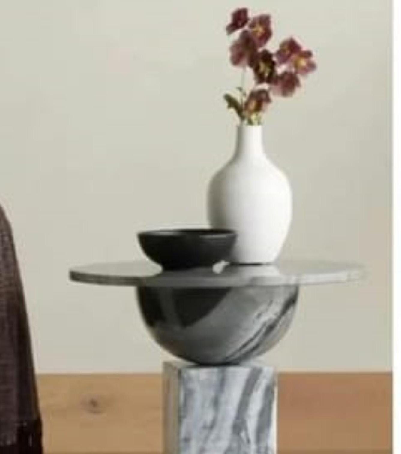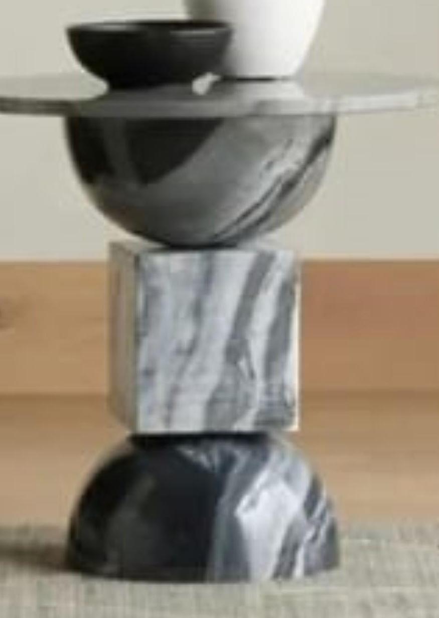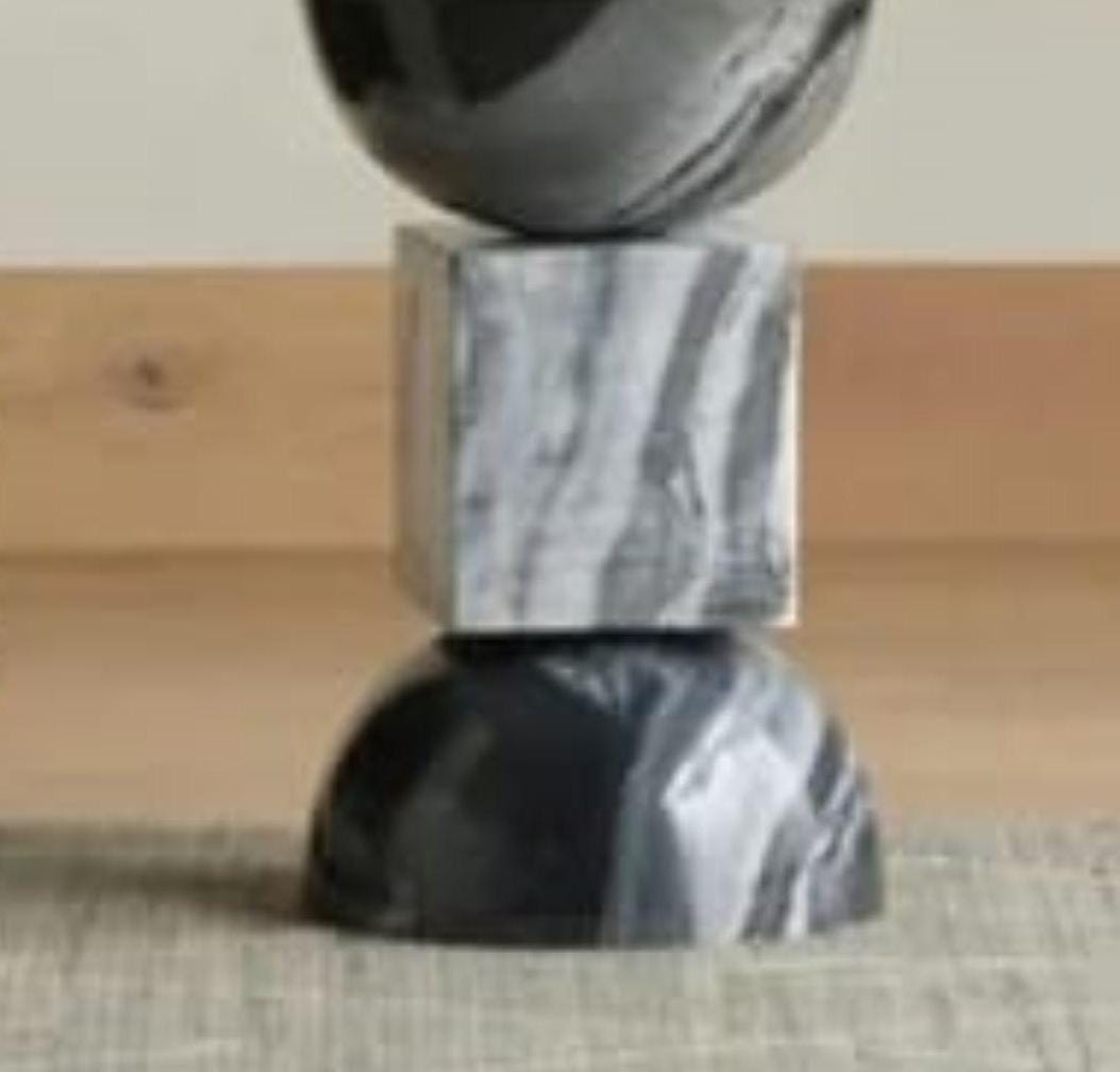 Embrace the beauty of balance and form with this Geometric Black Marble Side Table, a sculptural expression of minimalist artistry. Each element of the table — from the domed base and cube center to the smooth circular top — is meticulously handcrafted from solid natural marble, creating a design that feels both modern and timeless.