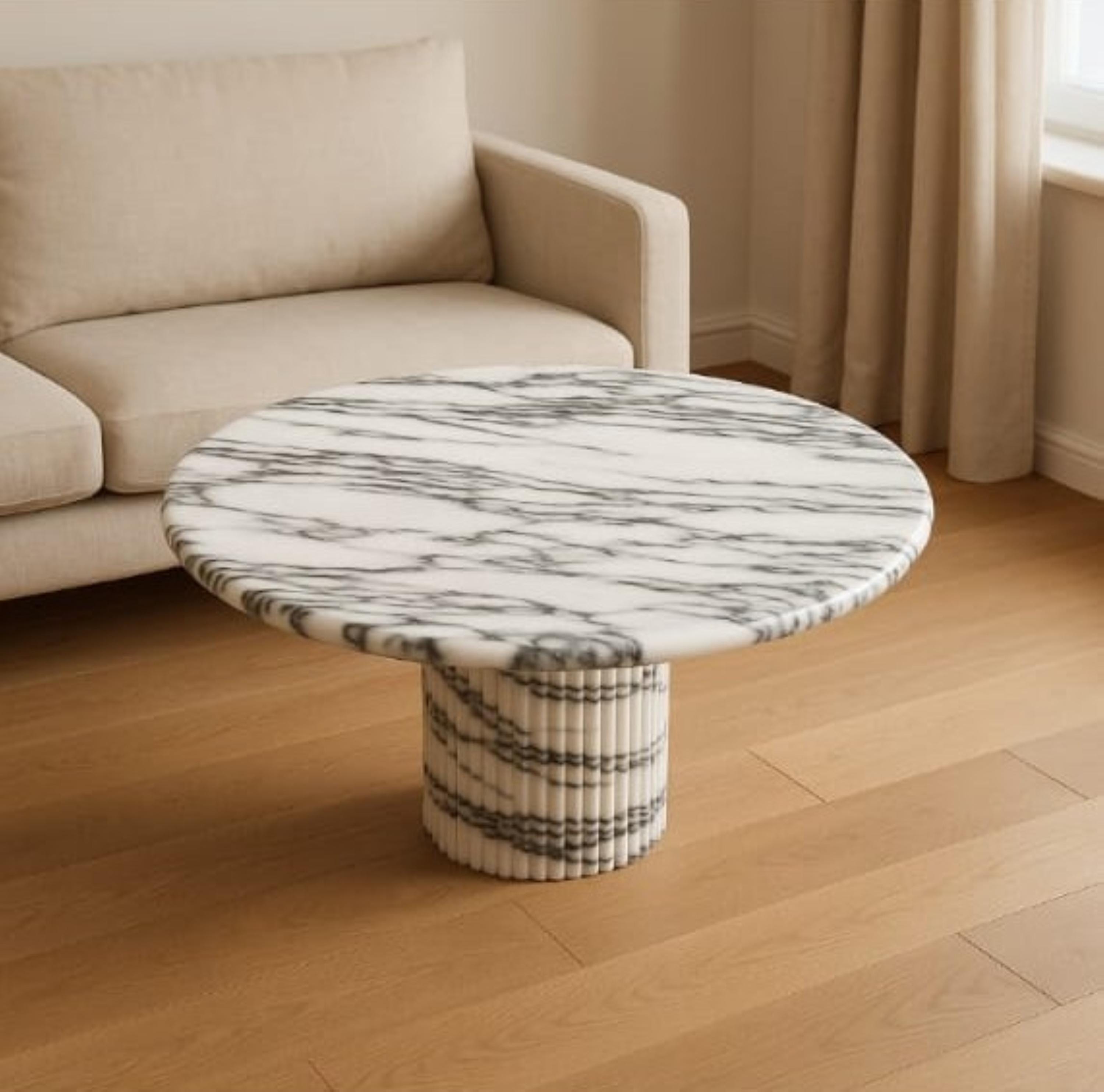 Discover timeless sophistication in this sculptural coffee table, crafted from a refined blend of natural stones: Travertino Rosso, Nero Marquina, and Arabescato White. Each material tells a story of geological richness — chosen not only for its beauty, but for the way it transforms space.