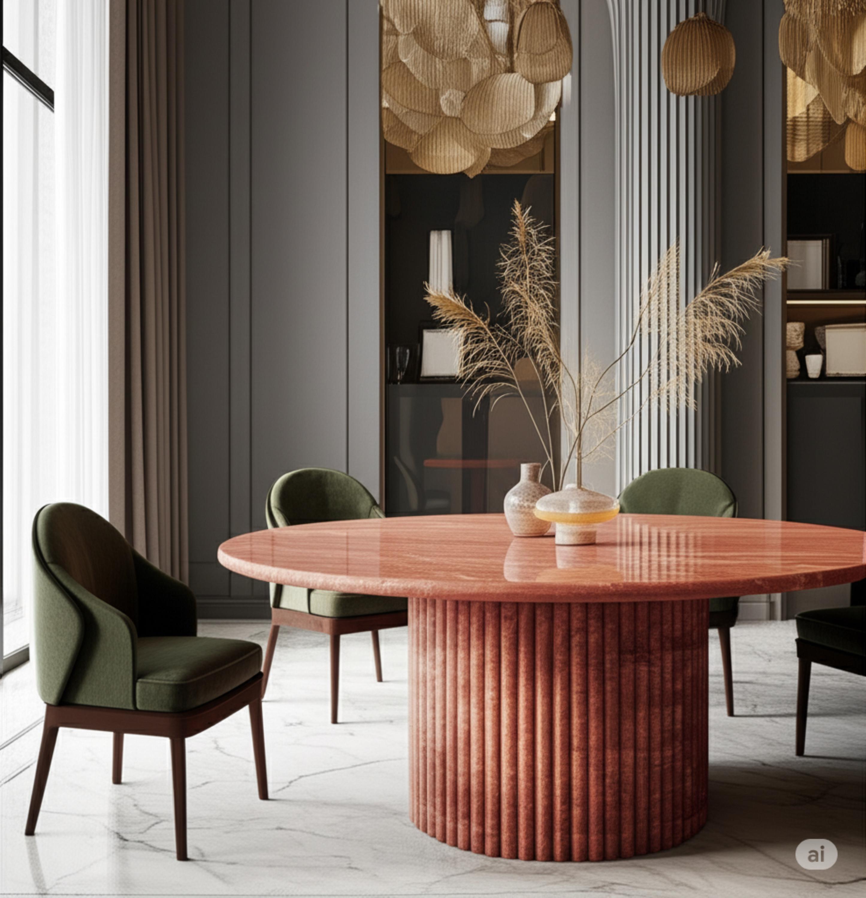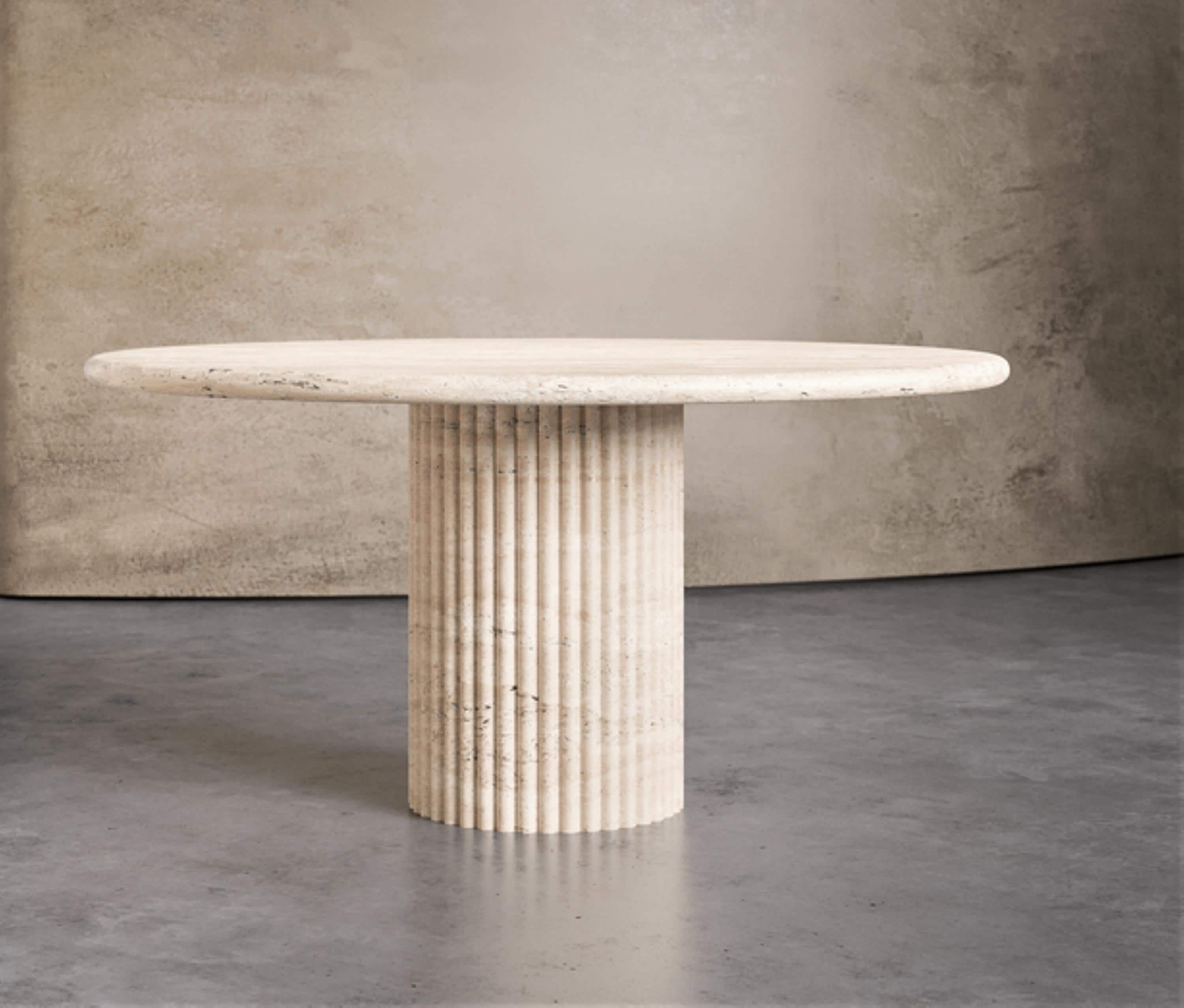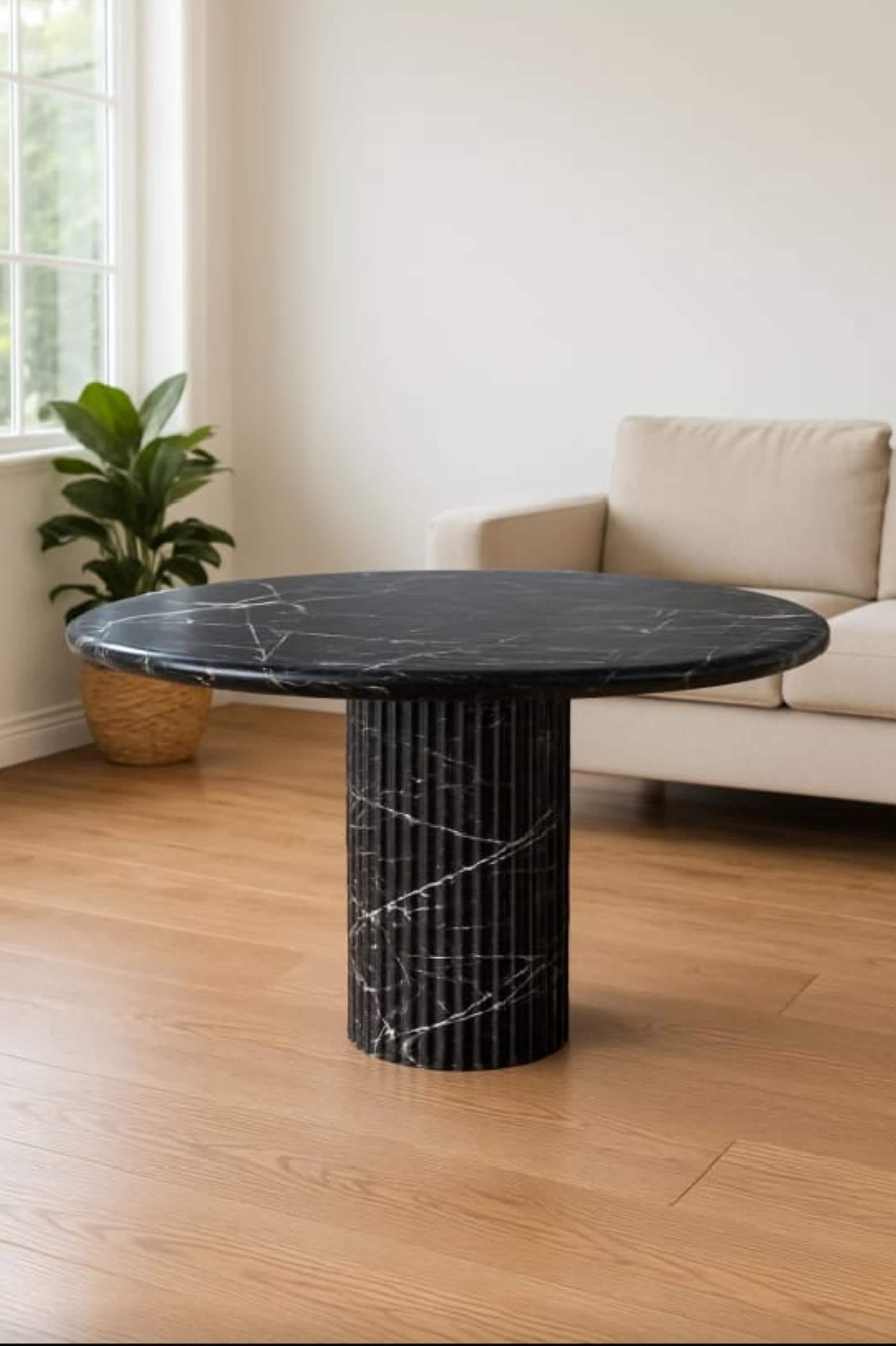 All stones are sourced from certified quarries in Spain and Italy. Each table is made-to-order and crafted by hand to highlight the natural veining and character of every slab.