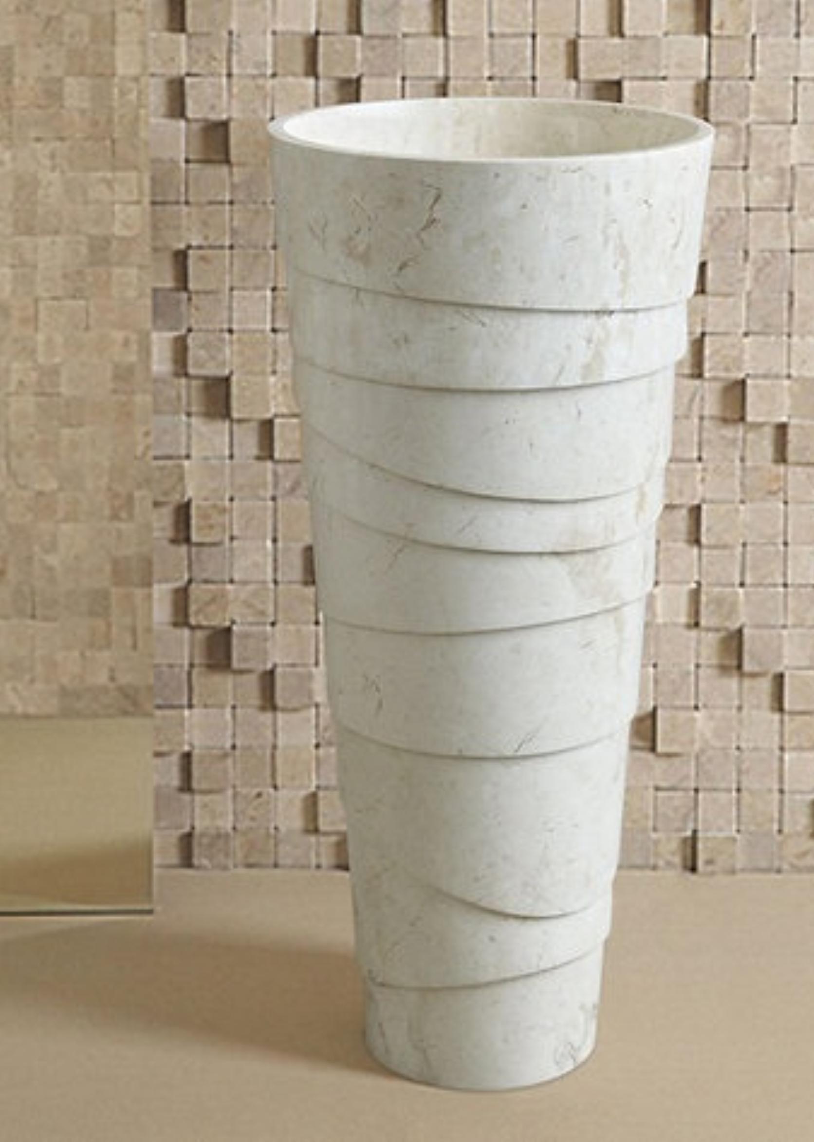 The freestanding conical design offers a sleek, modern aesthetic while maintaining the natural charm of the stone’s earthy veins and pores. This sculptural washbasin is ideal for luxury residences, boutique hotels, or spa-style interiors that value both functionality and design excellence.