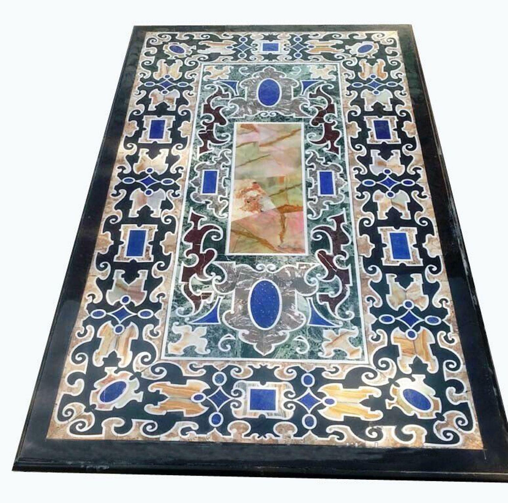 This marble inlay table top can be placed on custom bases, wooden stands, or metal frames to create a beautiful luxury table.