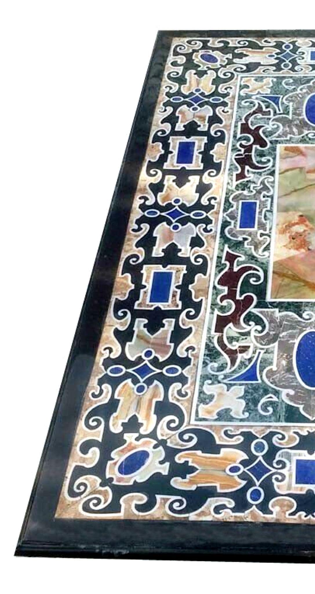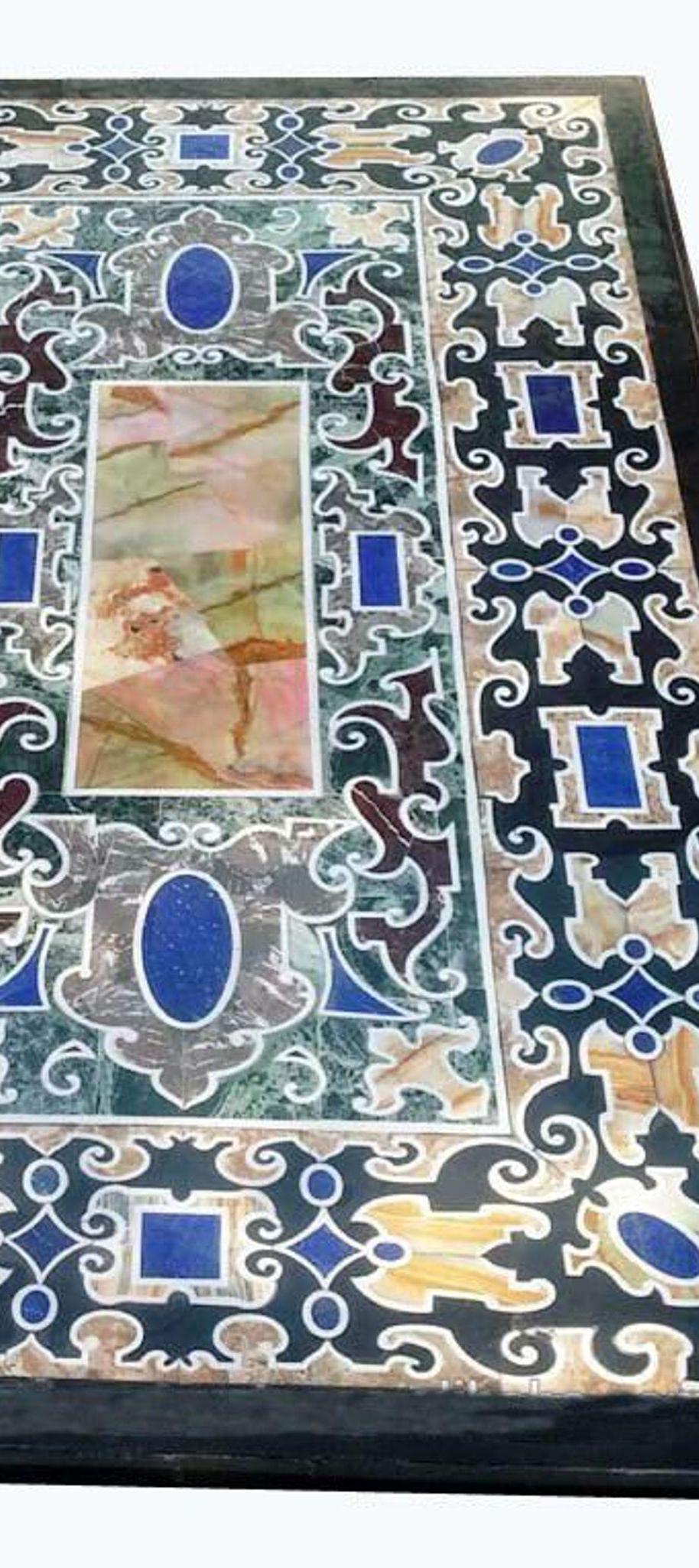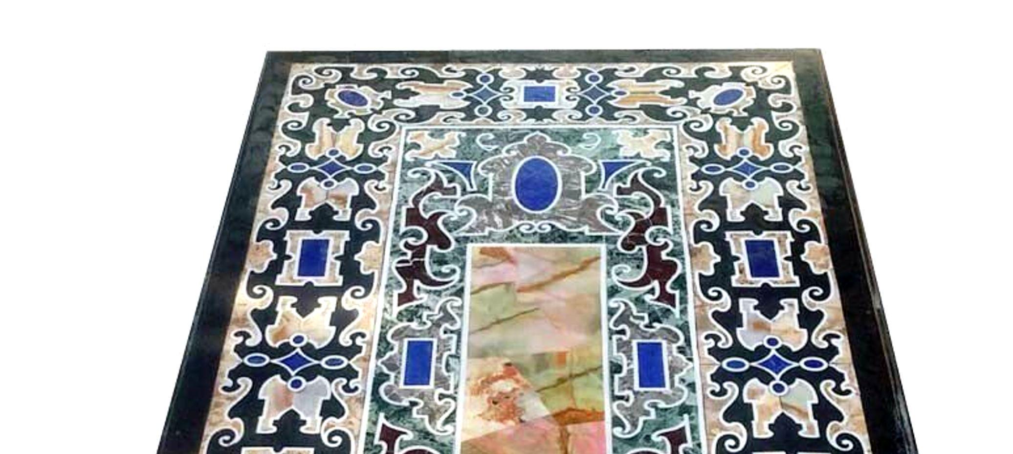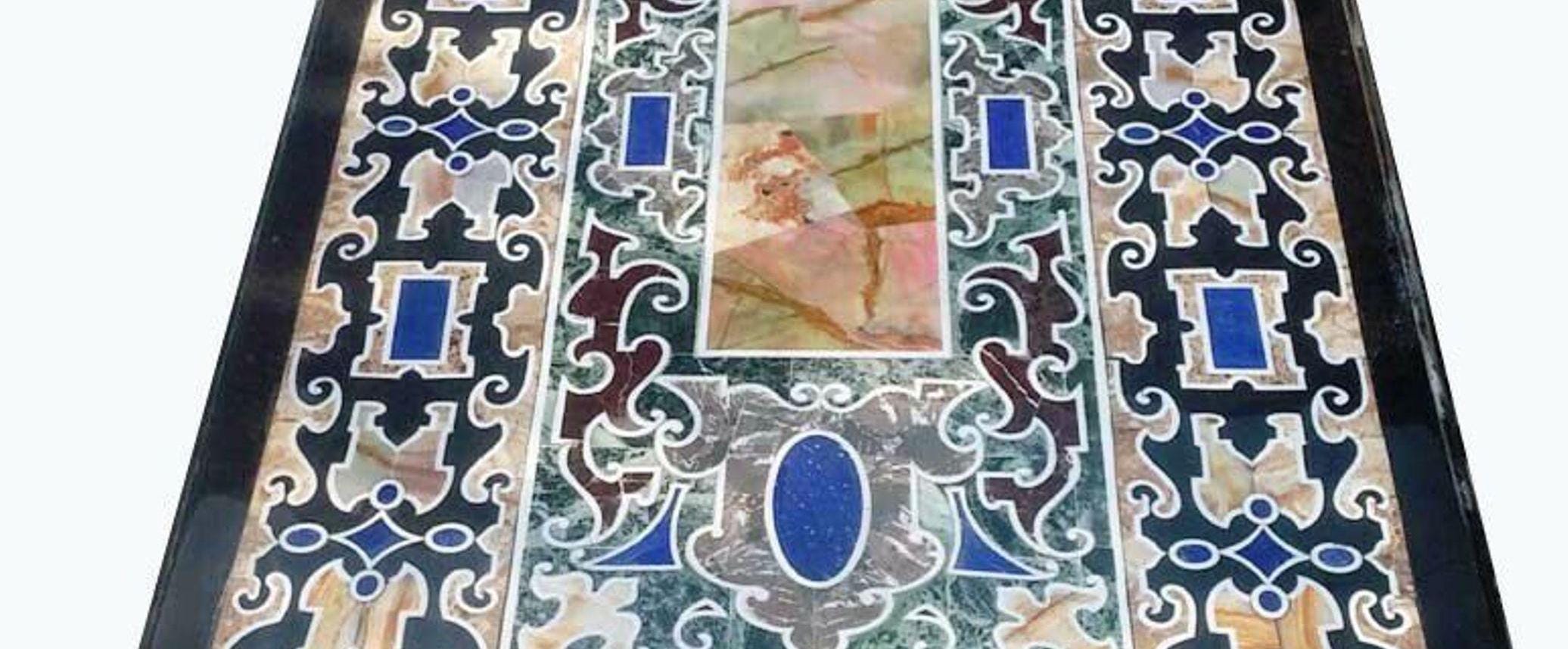 Add timeless elegance to your home with this handcrafted marble inlay table top, inspired by the traditional Pietra Dura art that originated in Florence, Italy. This stunning piece features intricate floral and geometric patterns created using carefully cut semi-precious stones inlaid into a smooth marble base.
