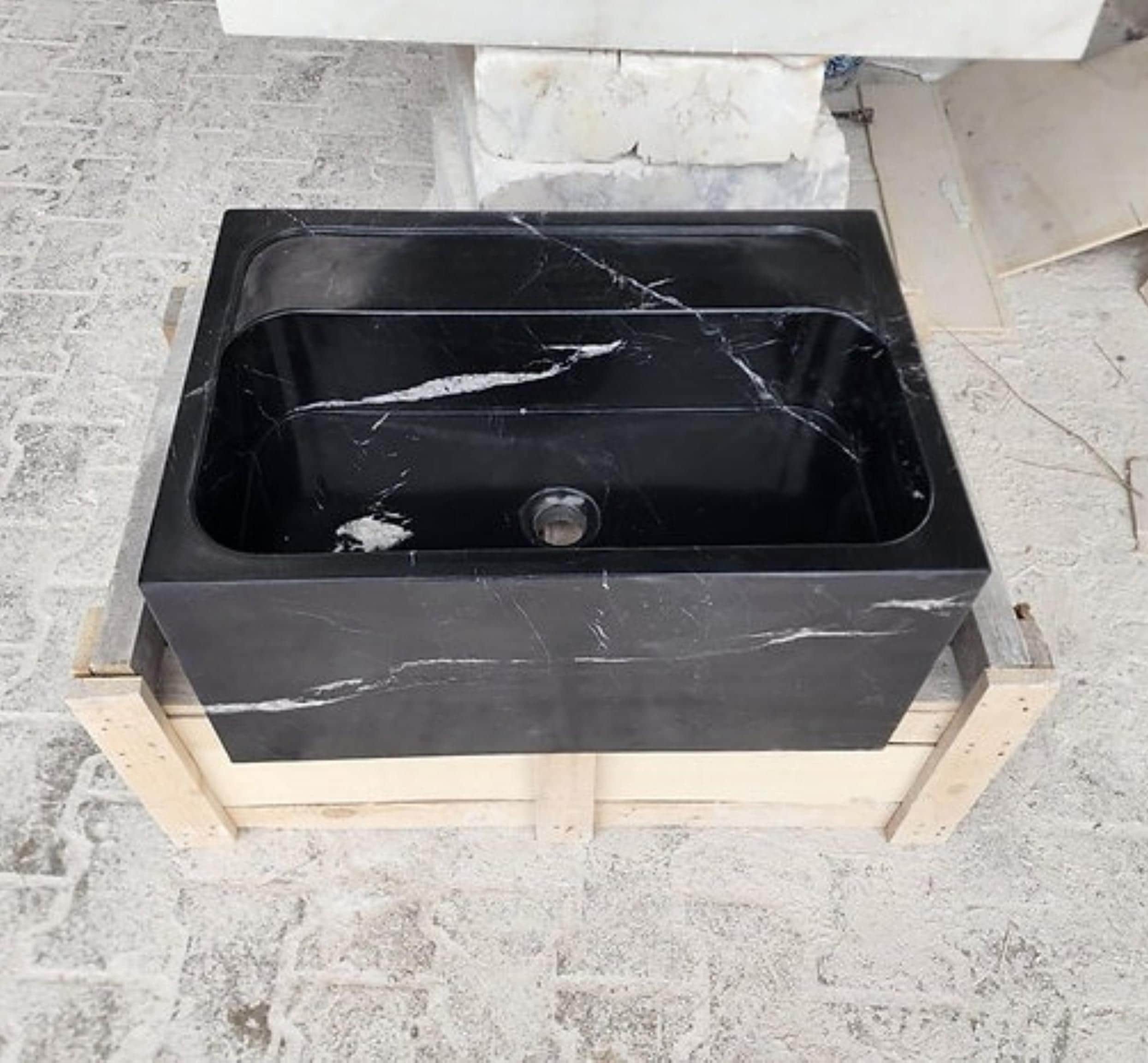 Nero Marquina Marble Farmhouse Sink | Black Apron Front Kitchen Sink