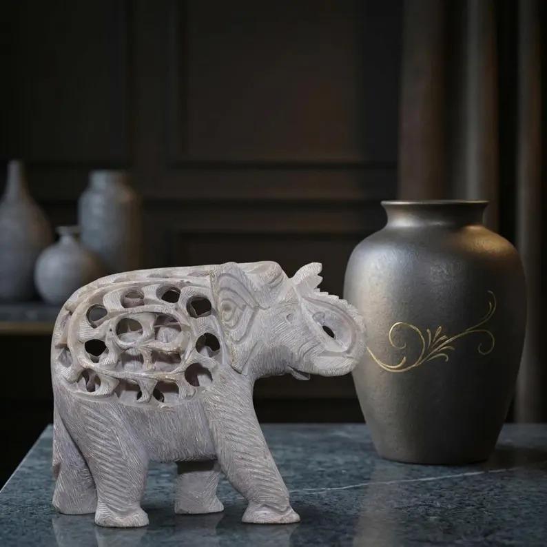 Hand Carved Soapstone Elephant Statue | Decorative Stone Elephant Sculpture
