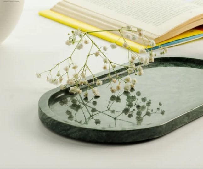 Elevate your space with the timeless beauty of this Green Marble Oval Tray, meticulously handcrafted from genuine marble. Its rich green tones and natural veining create a luxurious, organic aesthetic — making it a striking accent for any room.