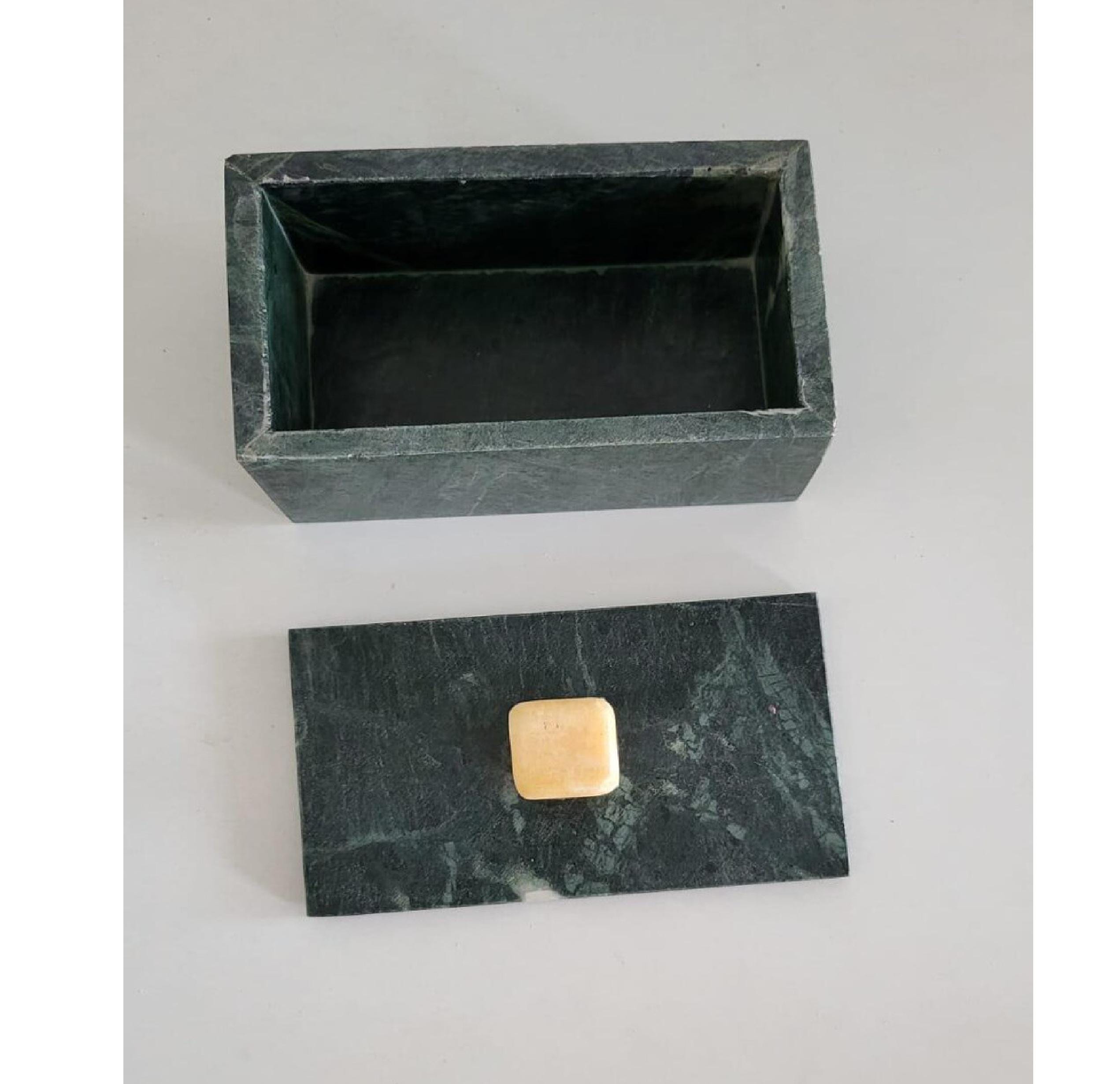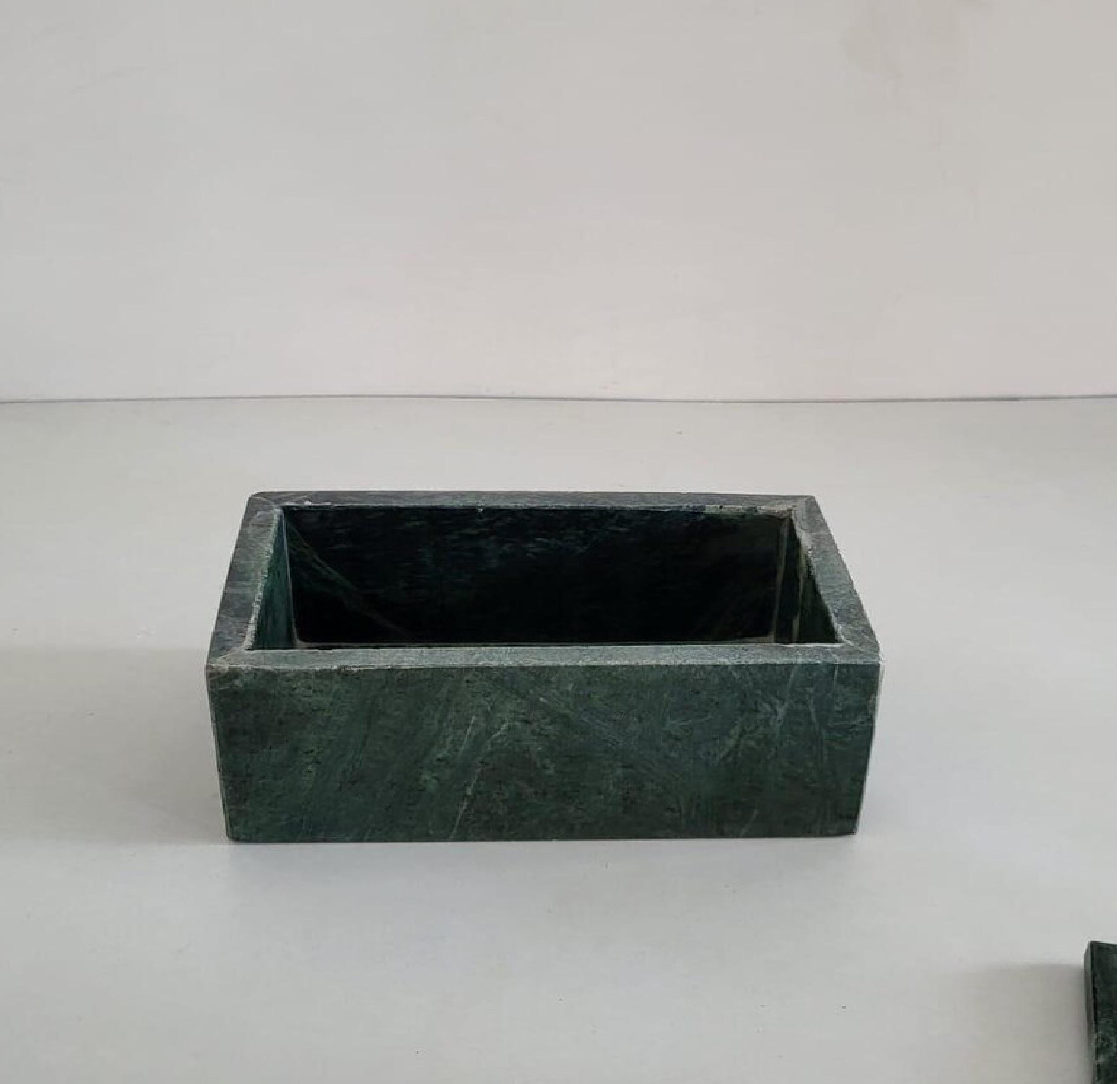 Enhance your space with this elegant and contemporary green marble box, combining functionality and artistry for a timeless addition to any setting.