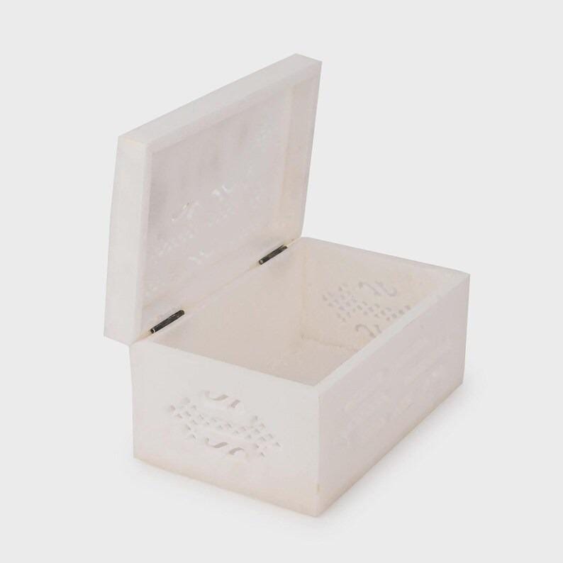 The smooth marble body and fitted lid make it perfect for storing jewelry, keepsakes, or small valuables, while also serving as a decorative accent piece.