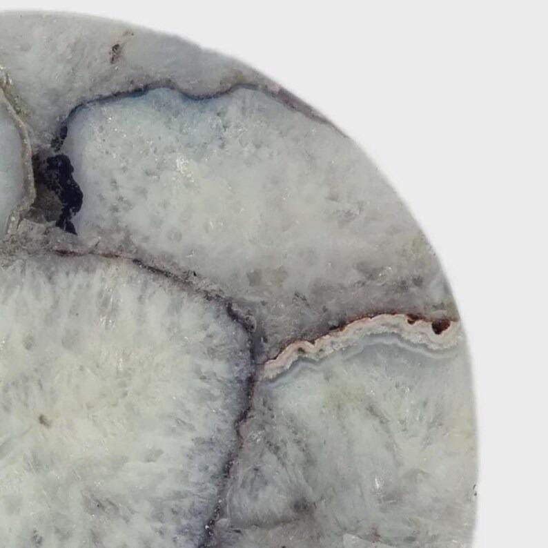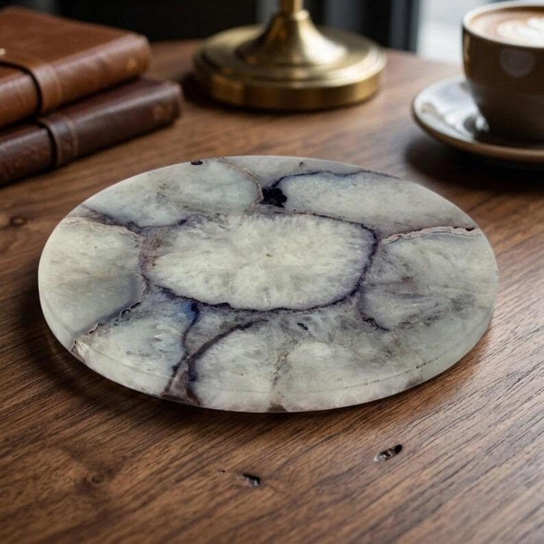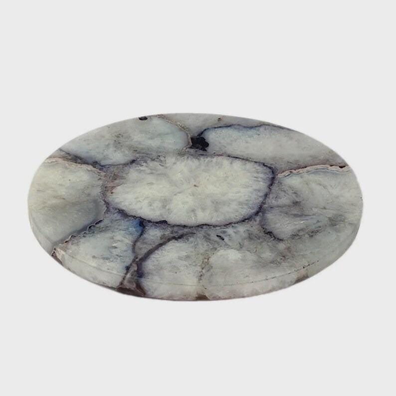 Elevate your space with the timeless beauty of this white agate tray, crafted from natural stone and designed to showcase organic elegance. Featuring soft white tones with subtle grey and earthy veining, this tray highlights the natural banding and crystalline patterns unique to agate.