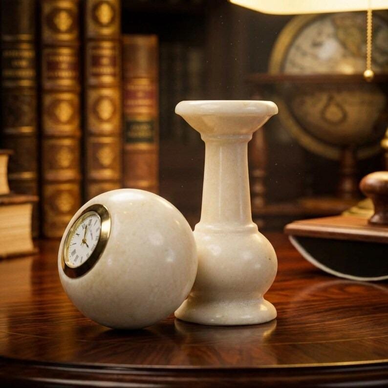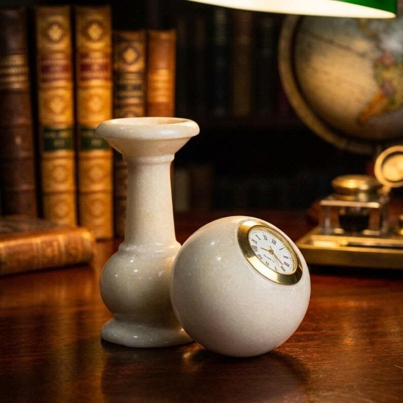 The minimalist aesthetic pairs beautifully with both contemporary and classic interiors, making it a versatile statement piece for your desk, bookshelf, mantel, or office.