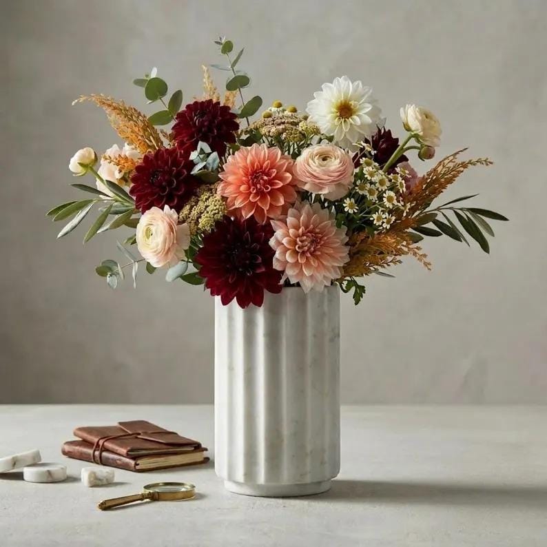 Luxury Flower Vase, Minimalist Modern Decor, Elegant Marble Centerpiece