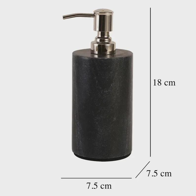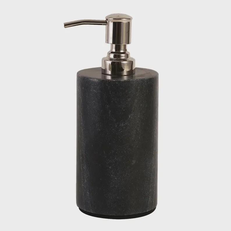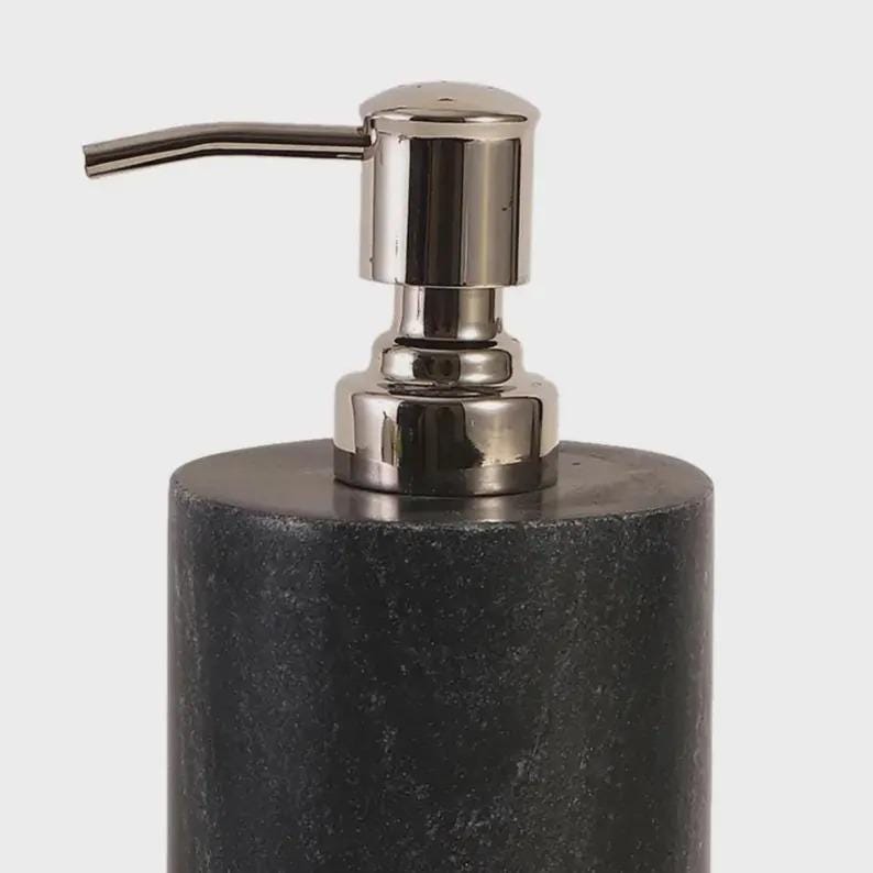 Add a touch of understated luxury to your space with this elegant black marble soap dispenser. Crafted from solid stone, this piece combines natural beauty with modern functionality—perfect for elevating your bathroom or kitchen sink.