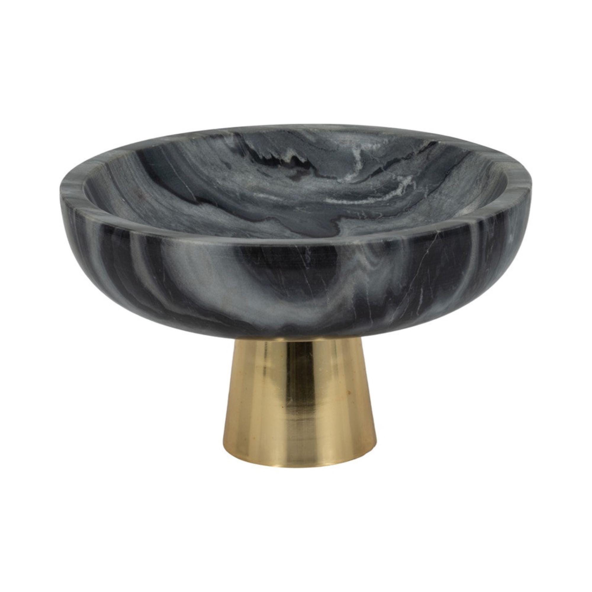 Add a touch of modern elegance to your home with this black marble pedestal bowl, beautifully elevated on a warm-toned brass base. Designed for both function and style, this piece makes a striking centerpiece for any space.