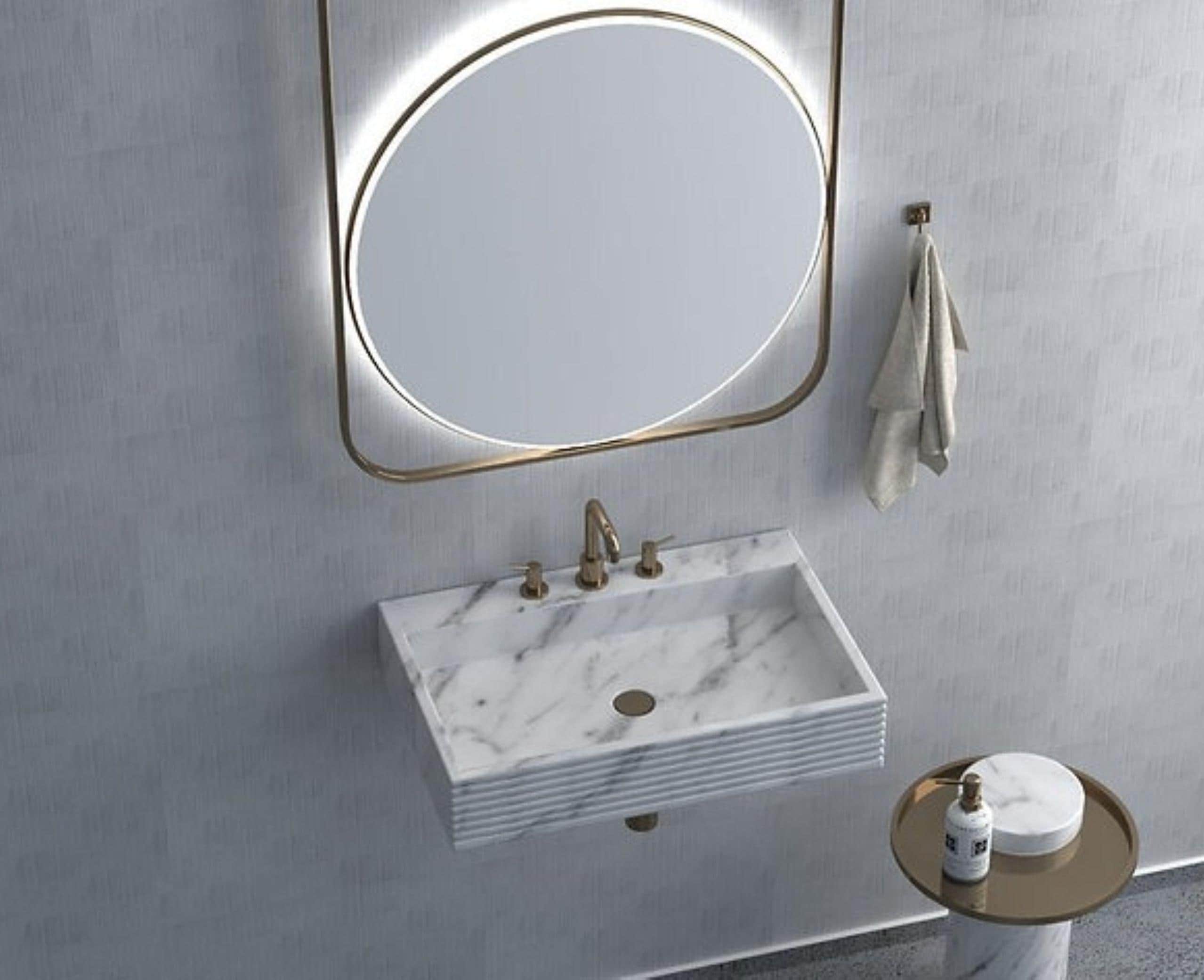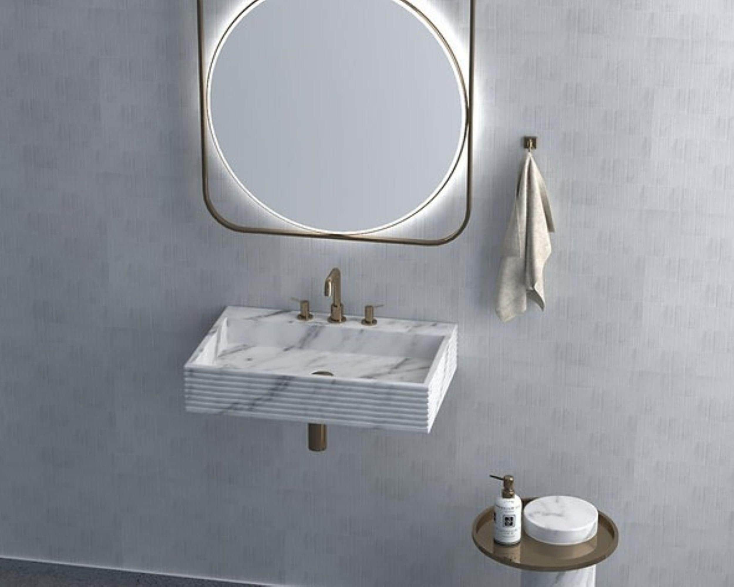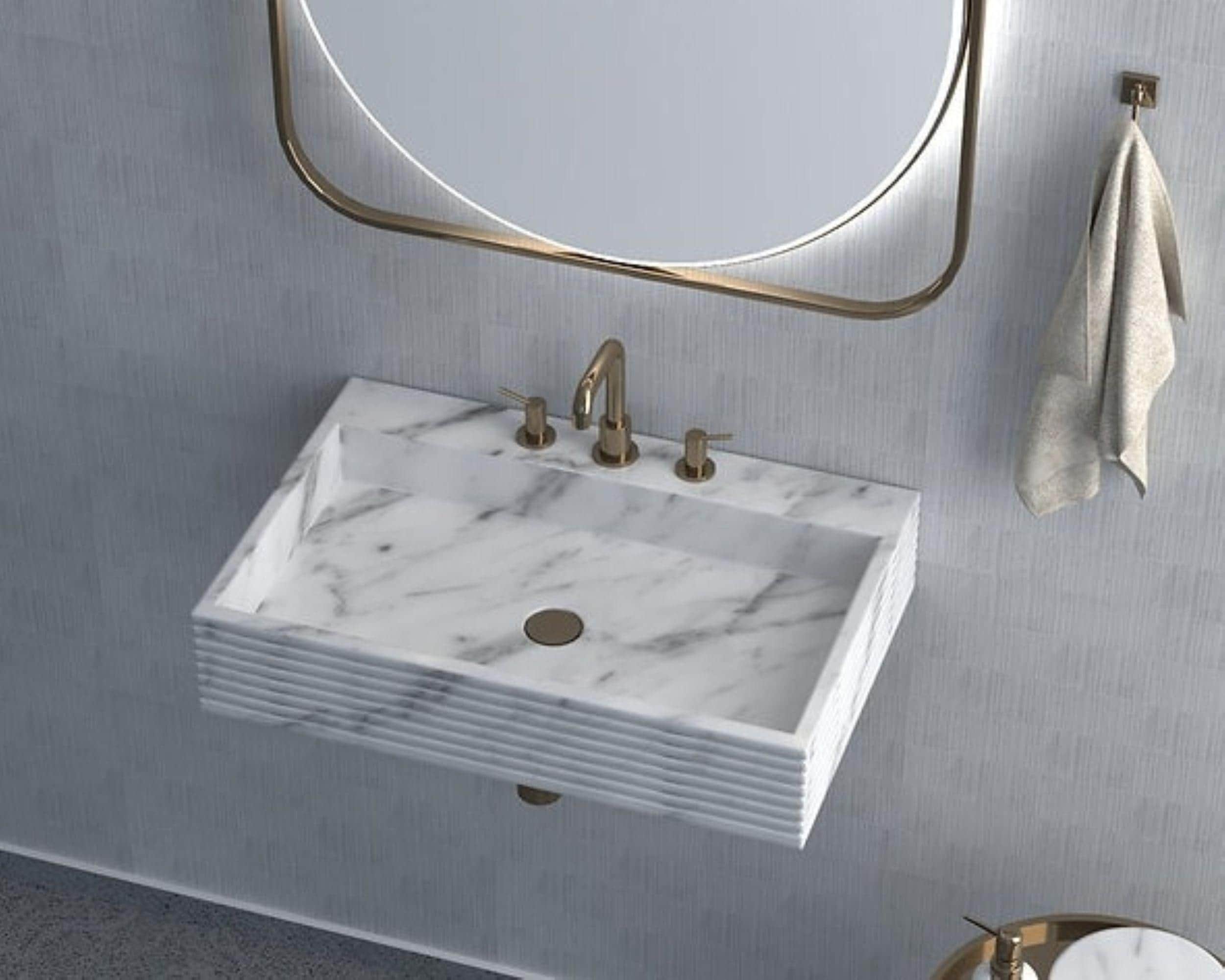 Modern Wall Mounted Marble Sink | Floating Stone Bathroom Basin