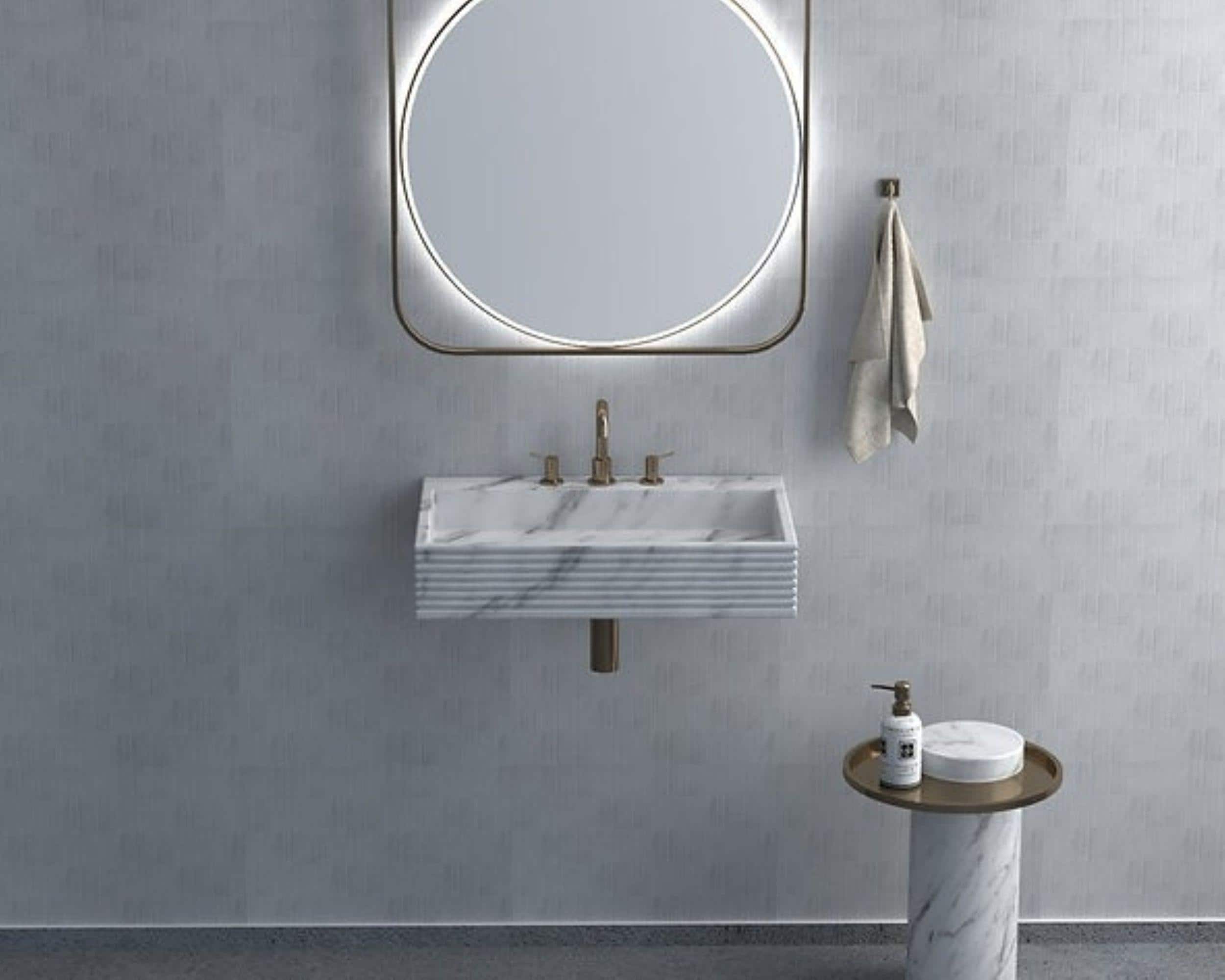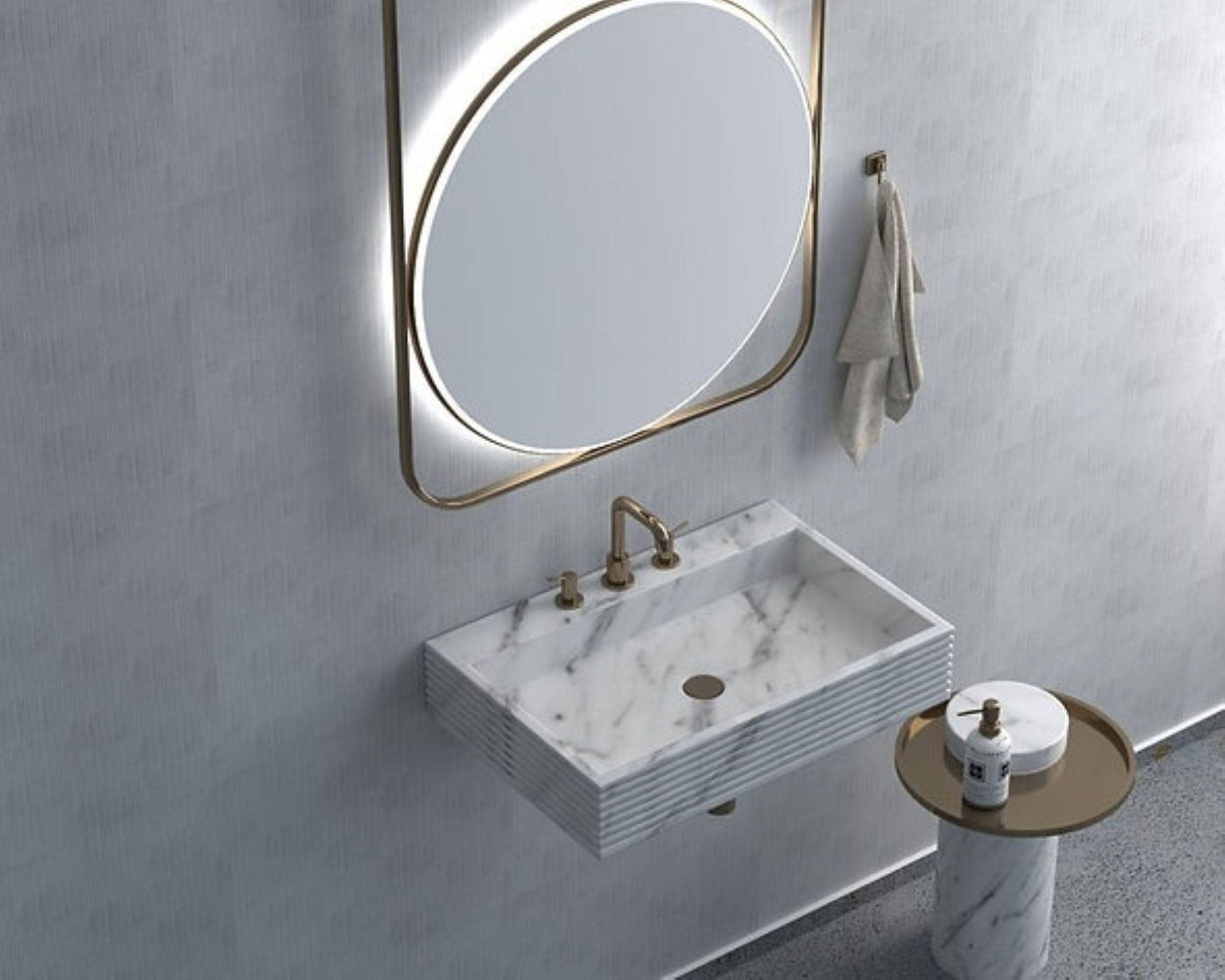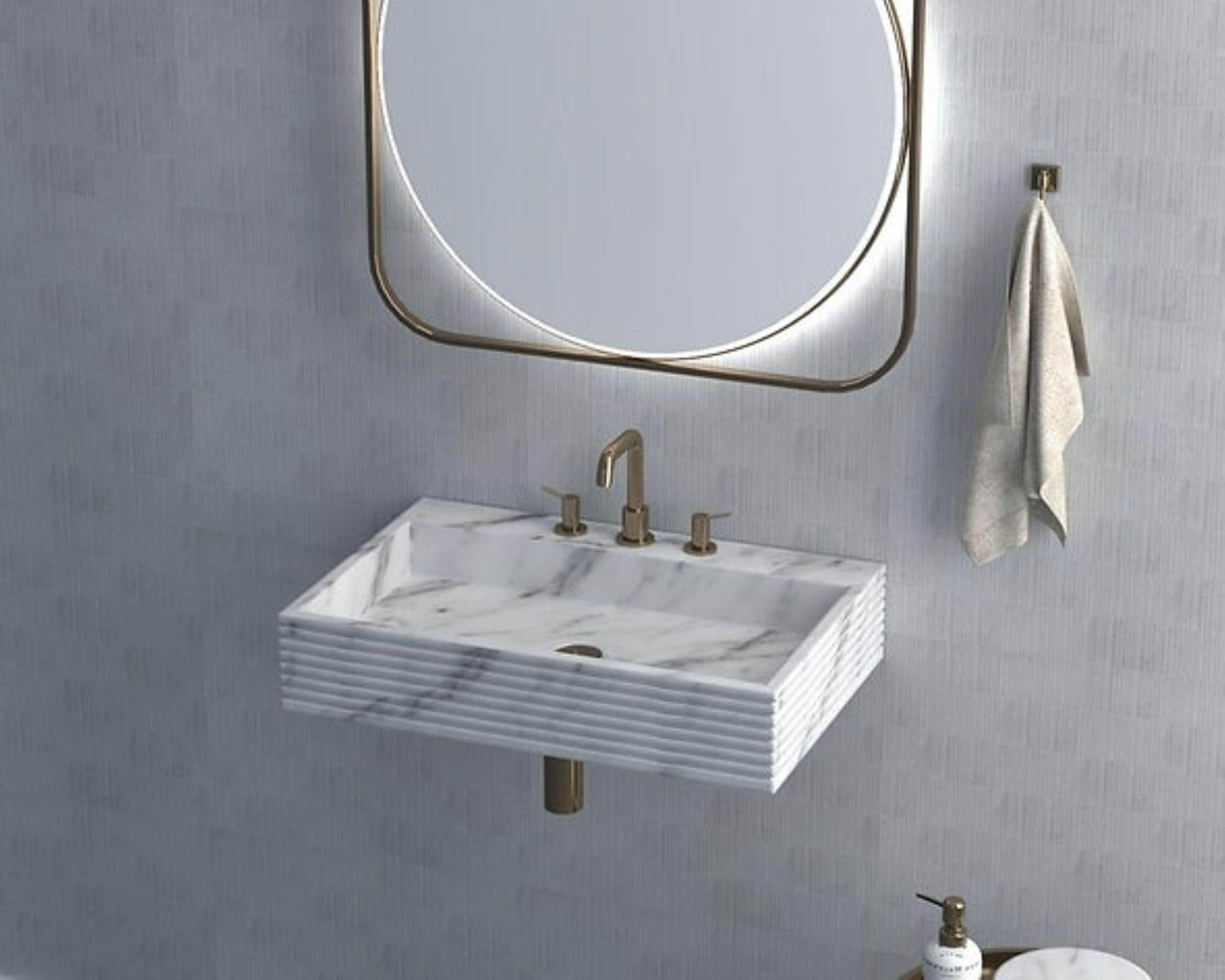 Modern Wall Mounted Marble Sink | Floating Stone Bathroom Basin