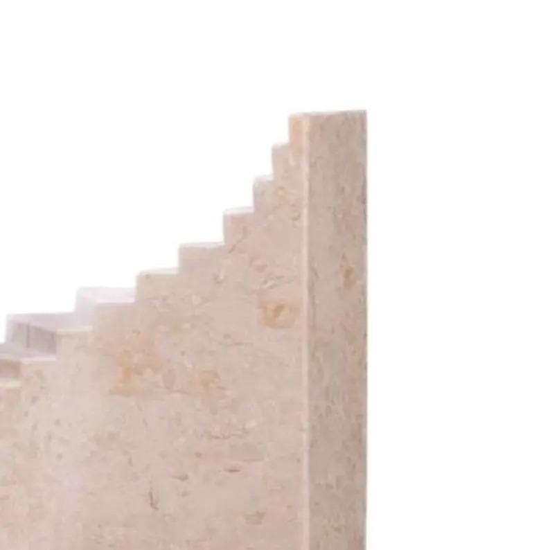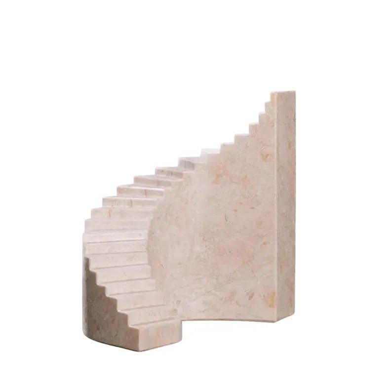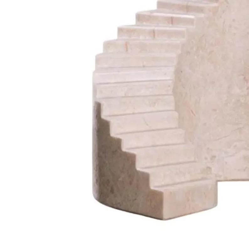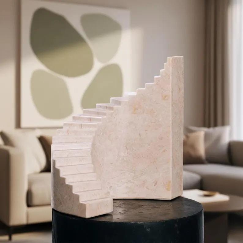 Crafted from natural travertine, each piece showcases unique textures, soft beige tones, and organic variations that highlight the beauty of raw stone. The sculptural staircase design adds a bold yet understated statement to any space, making it perfect for styling shelves, consoles, or coffee tables.