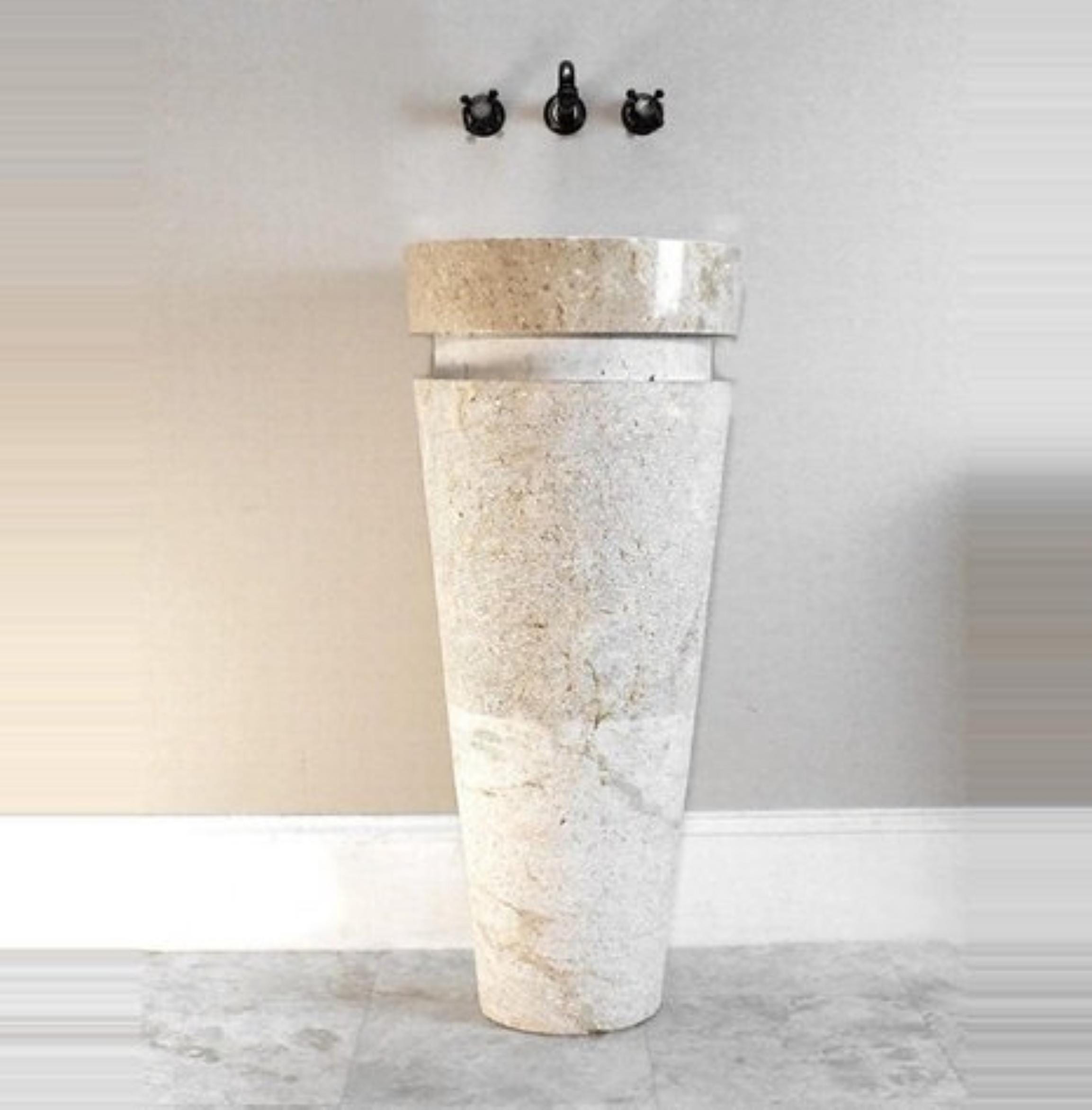 Cone Shaped Italian Travertine Pedestal Wahsbasin, Powder Room Sink