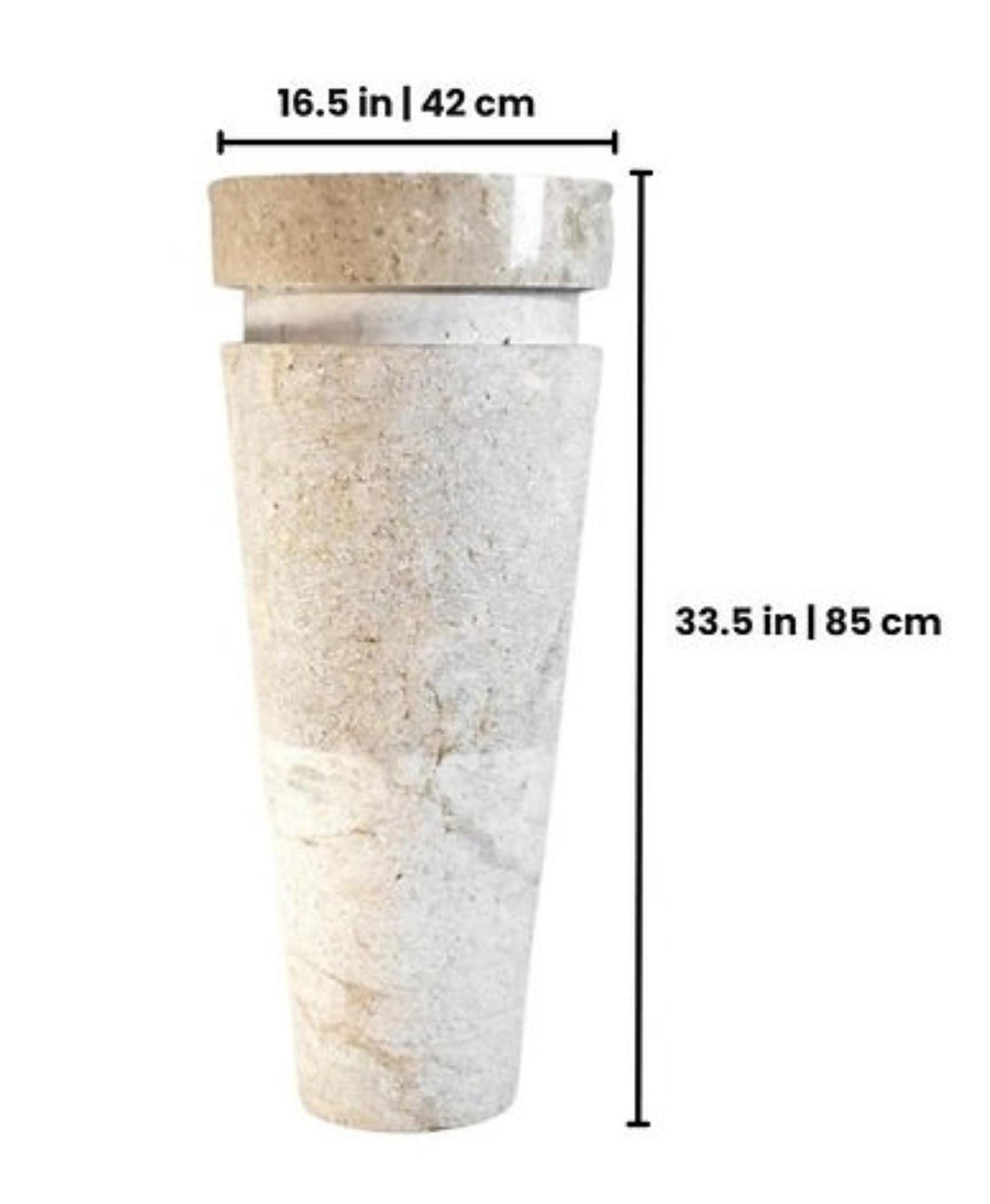 Elevate your space with this striking hand-carved natural stone pedestal sink, designed to bring sculptural beauty and timeless elegance into modern interiors. Crafted from solid stone, this freestanding basin features a gently tapered silhouette with a bold, architectural presence that transforms any bathroom into a refined, spa-like retreat.