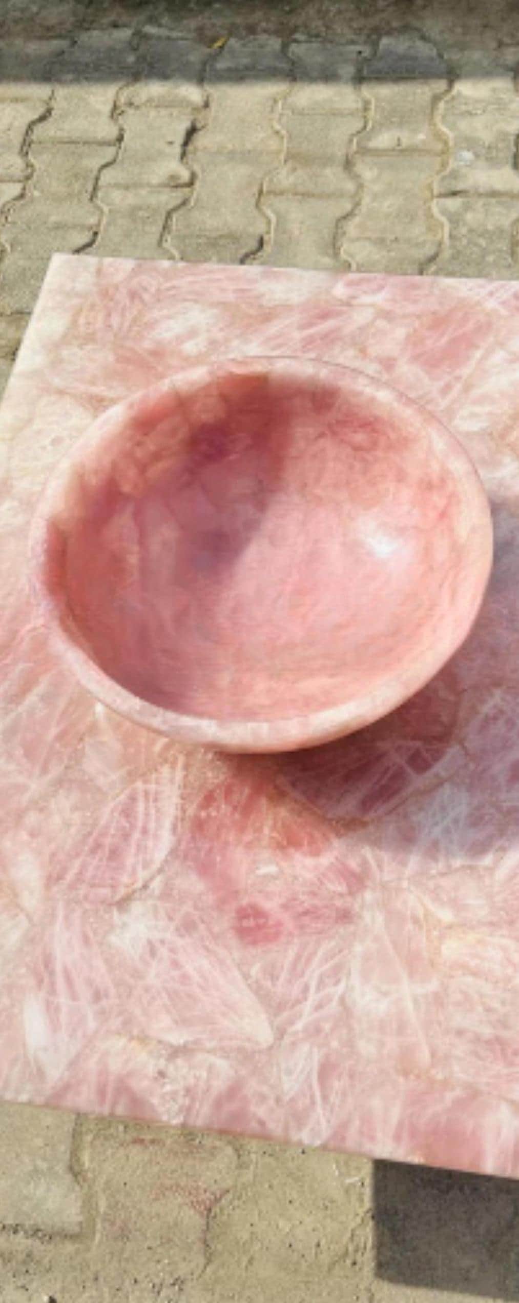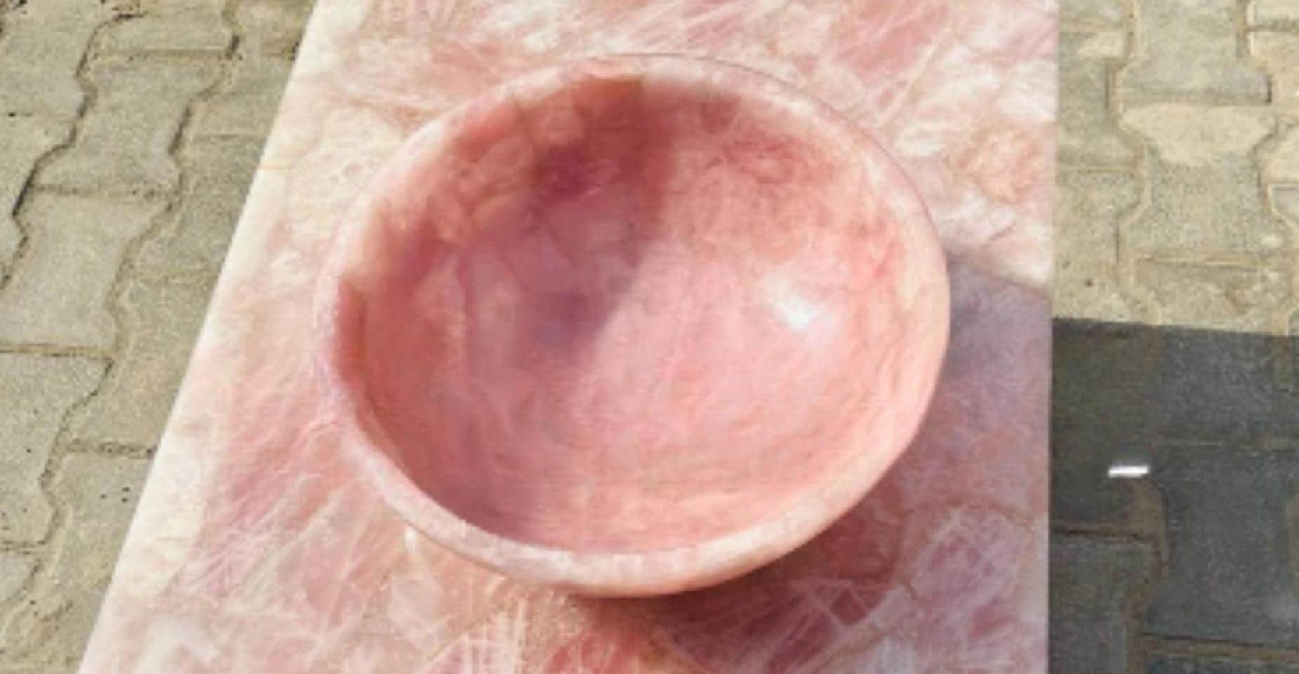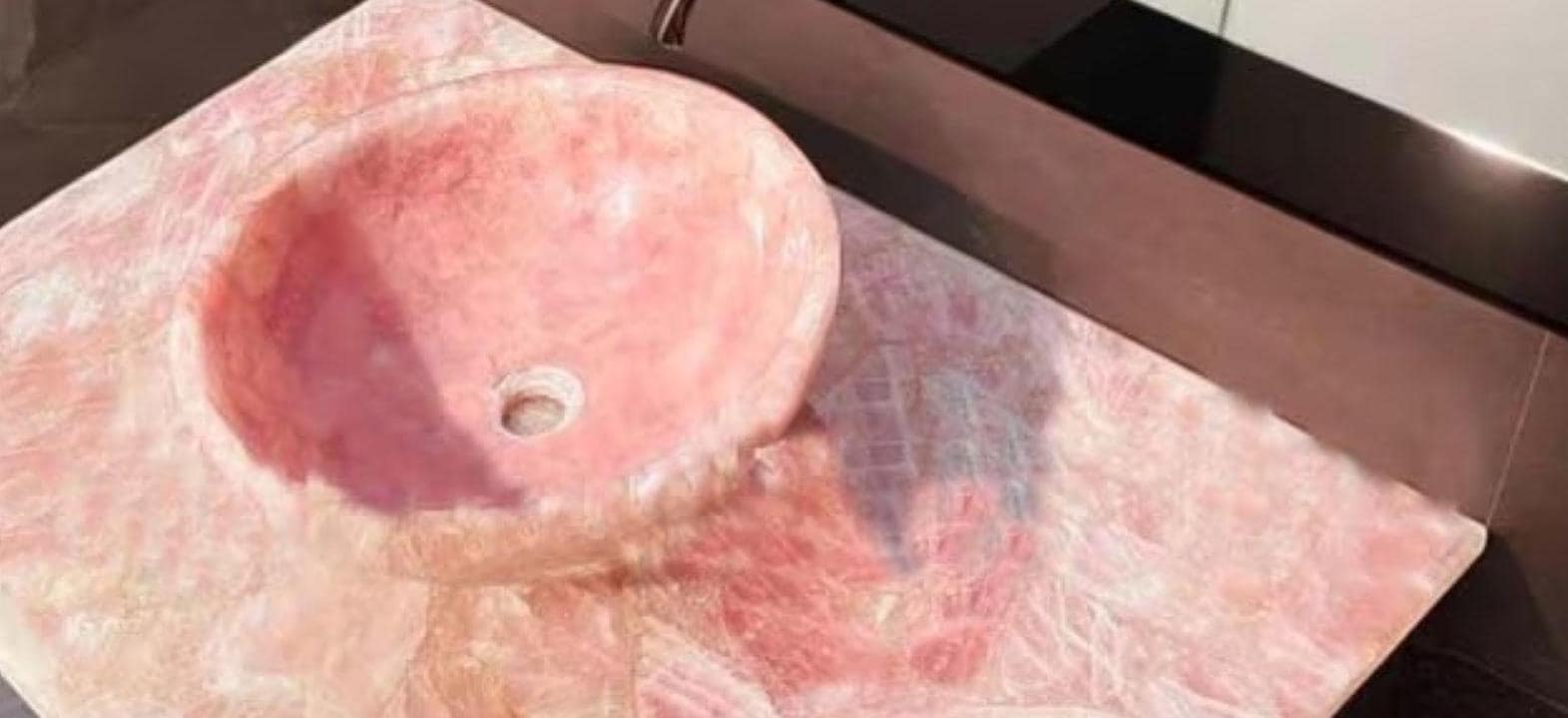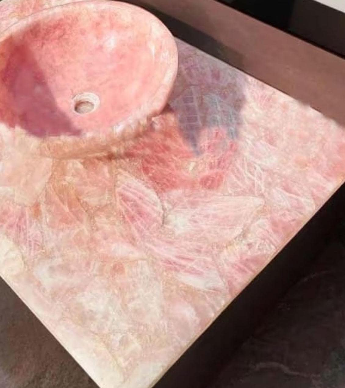 Elegant Rose Quartz Bathroom Sink with Matching Table – Semi Precious Stone Set