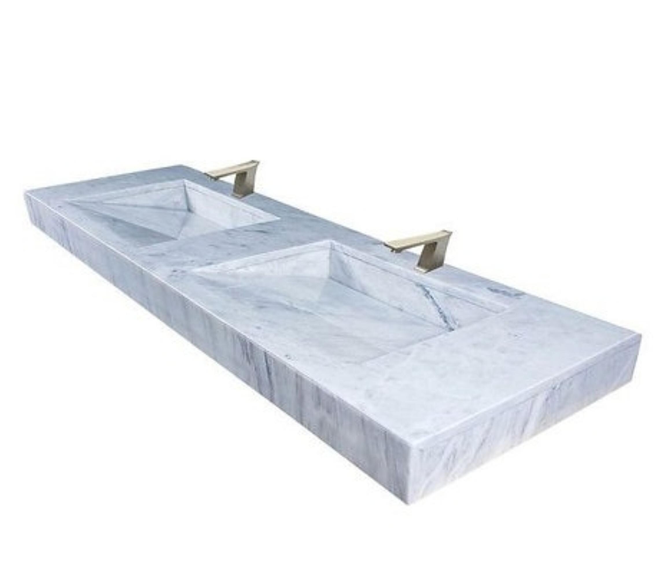 Modern Marble Double Sink Vanity, Handmade Rectangular Dual Basin Washbasin