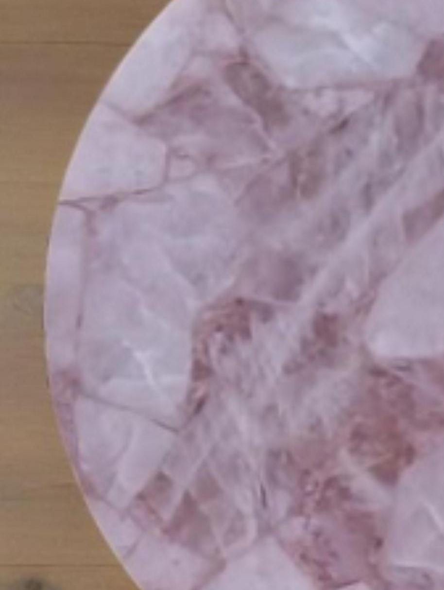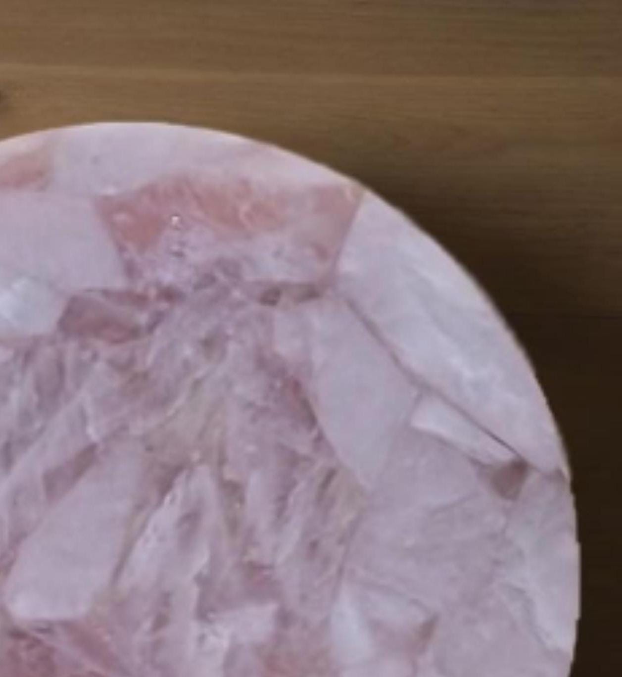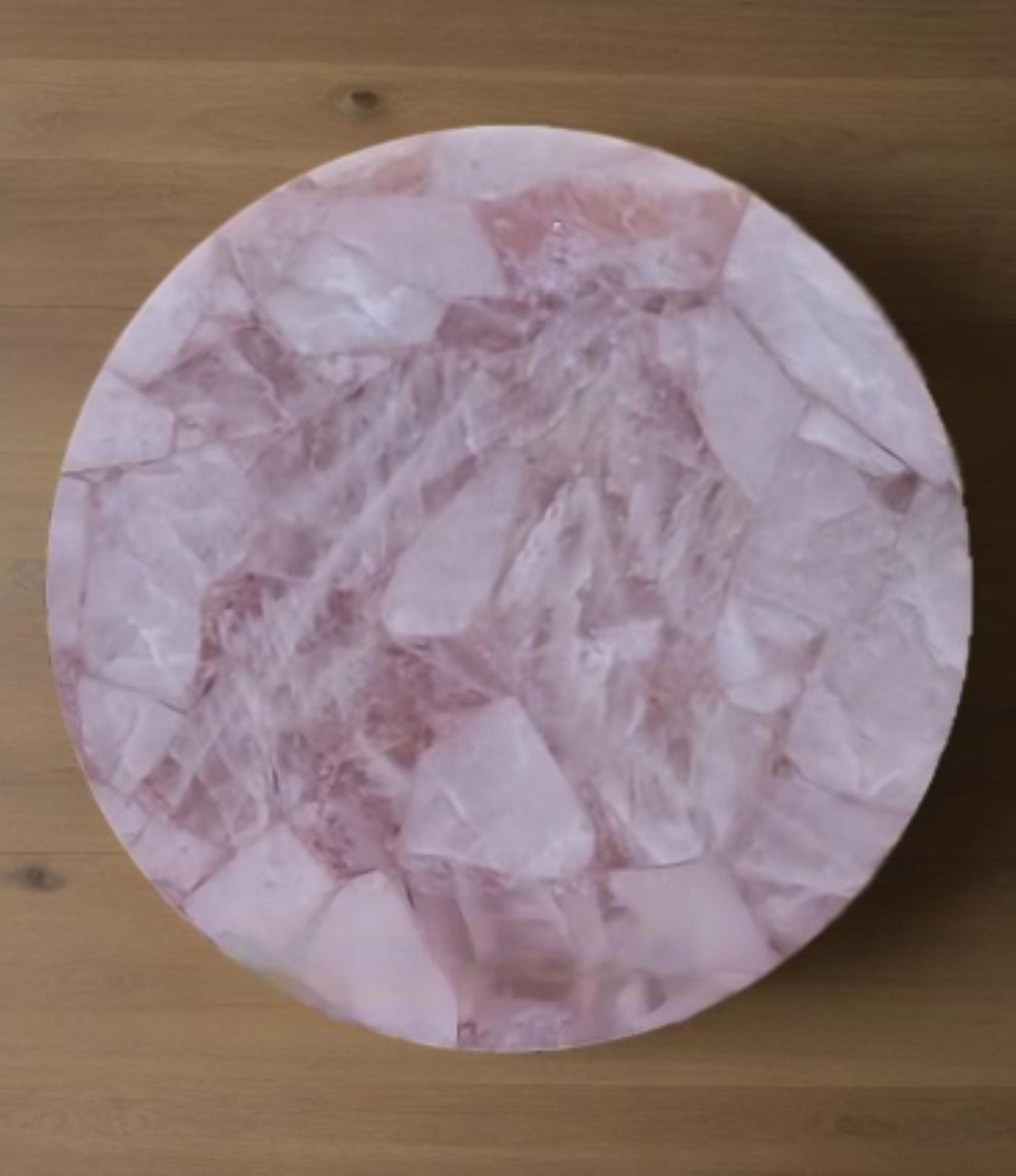 This stunning round centerpiece is crafted from polished rose quartz stone, exuding a soft pink hue and natural textures. It serves as an elegant focal point for any coffee or dining table. Paired with a minimalistic, the piece adds a touch of luxury and sophistication to modern or traditional decor settings. Ideal for enhancing living rooms, offices, or conference spaces with a natural, yet refined aesthetic.