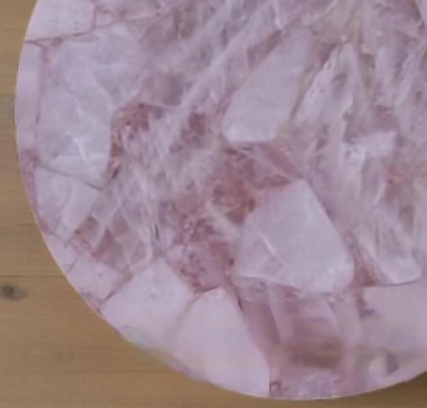Handmade Rose Quartz Table Top: Gemstone Centerpiece, Inlaid Semiprecious Stones