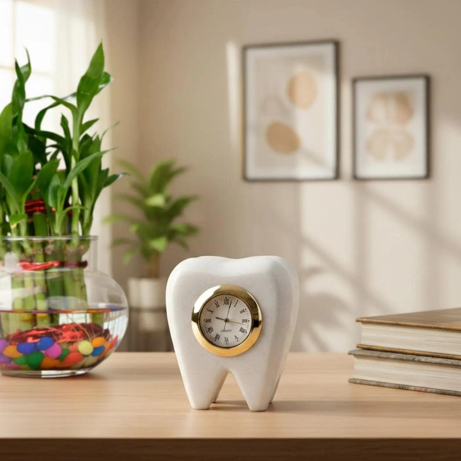 Each piece showcases subtle natural variations in the marble, making every clock truly one-of-a-kind. The sculptural tooth form makes it a perfect decorative accent for dental professionals, clinics, or anyone who appreciates distinctive and modern décor.