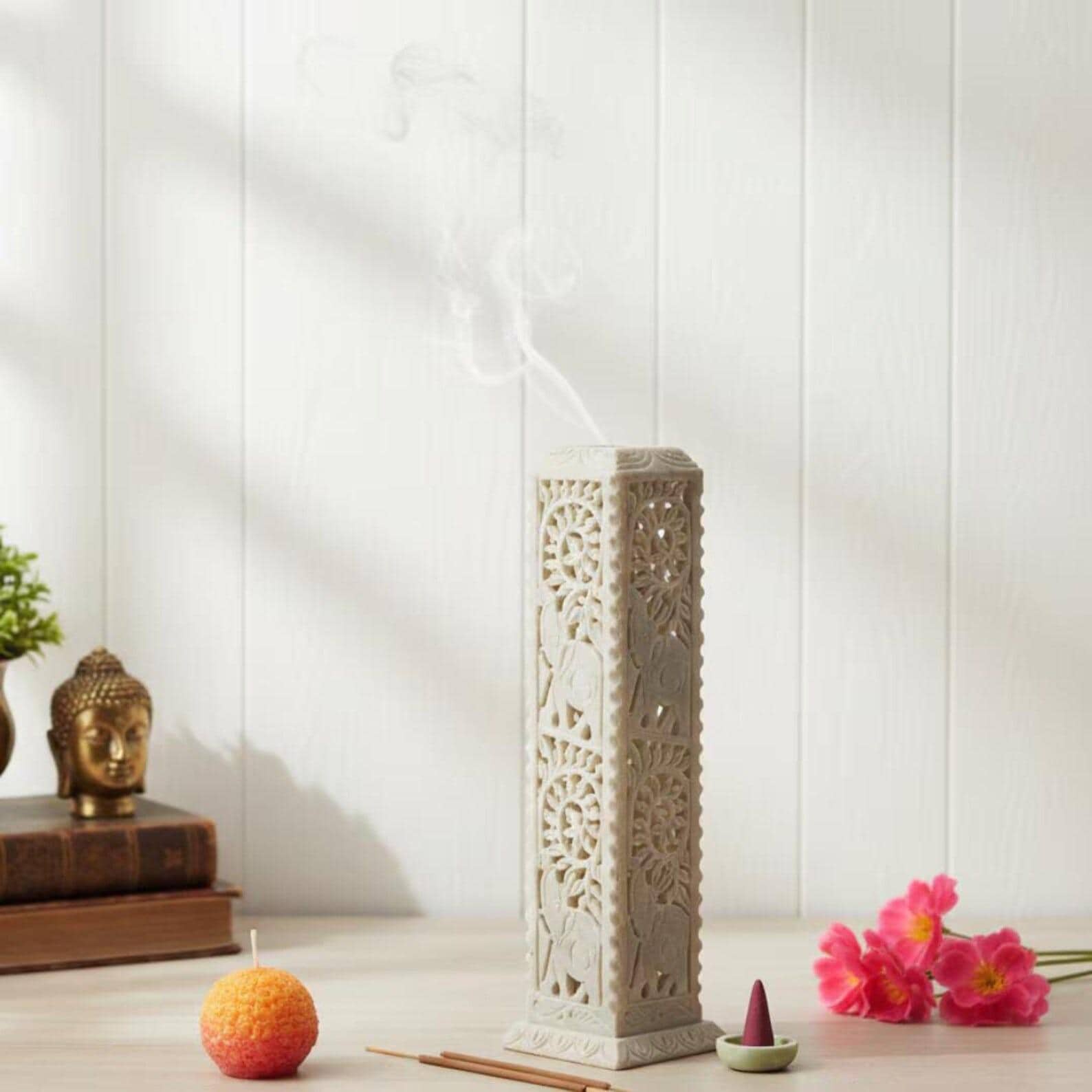 Stick, Cone & Candle Burner | Hand Carved Stone Aromatherapy Decor