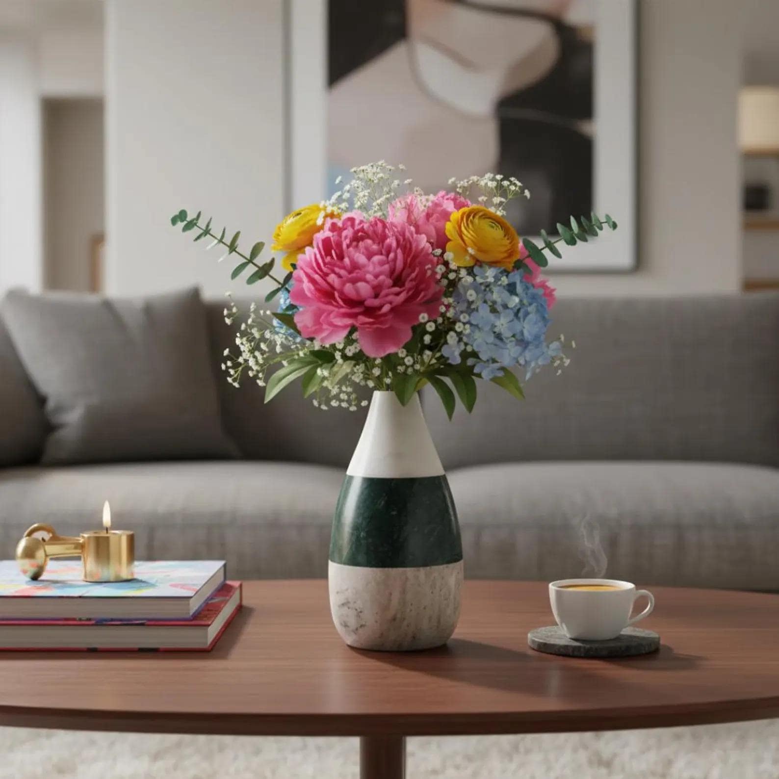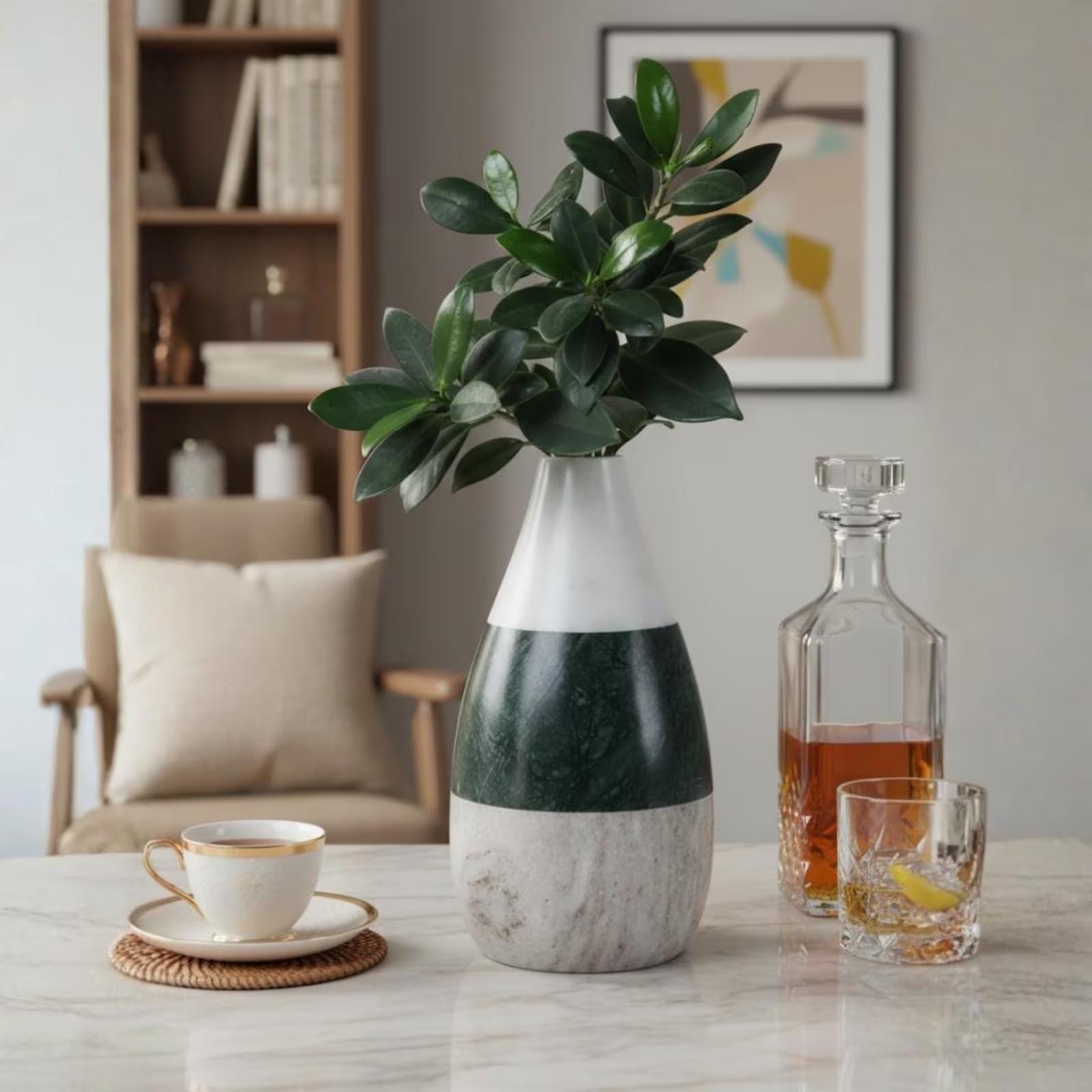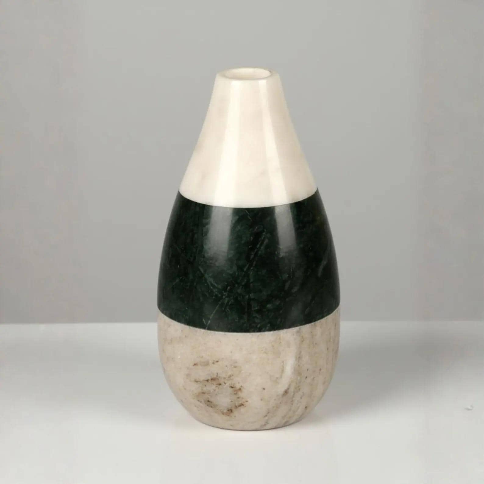 Add timeless elegance to your space with this tri-color marble vase, handcrafted from natural stone and designed with a modern color-block aesthetic. Featuring a harmonious blend of white, deep green, and soft beige marble, this piece brings a sophisticated and earthy touch to any interior.