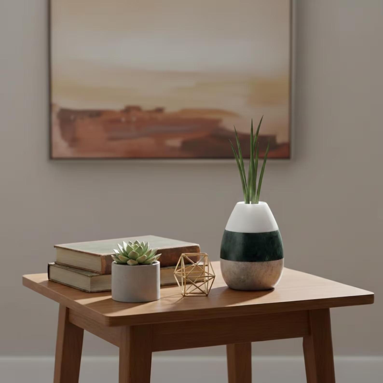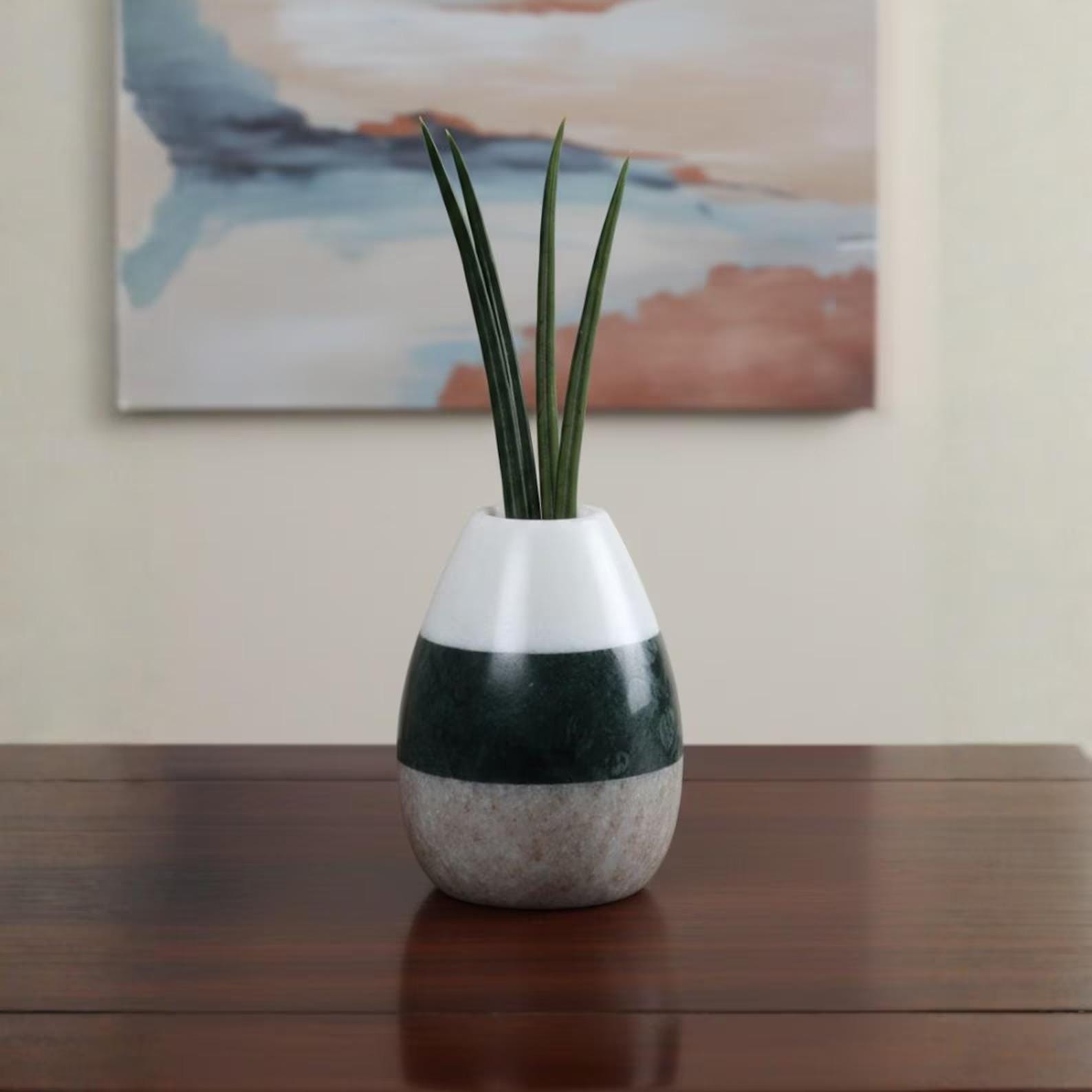 White Green Brown Stone Vase | Modern Home Decor Accent