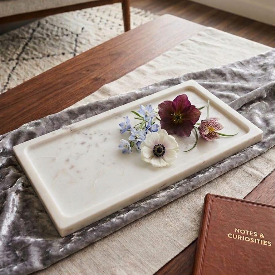 Add a refined, modern touch to your home with this minimalist rectangular marble tray. Crafted from solid natural stone, this tray features clean lines, softly raised edges, and a smooth polished finish that highlights the beauty of natural marble veining.