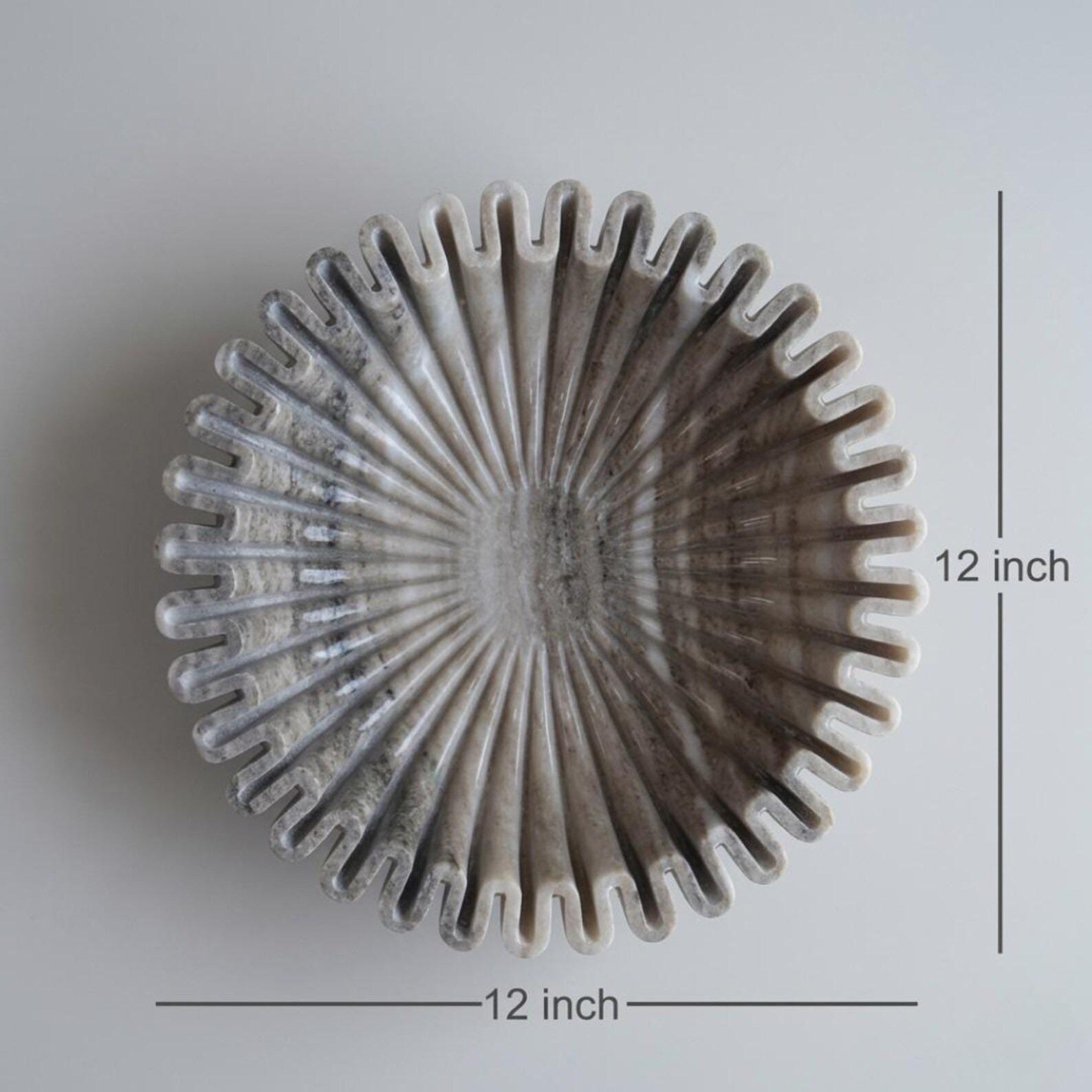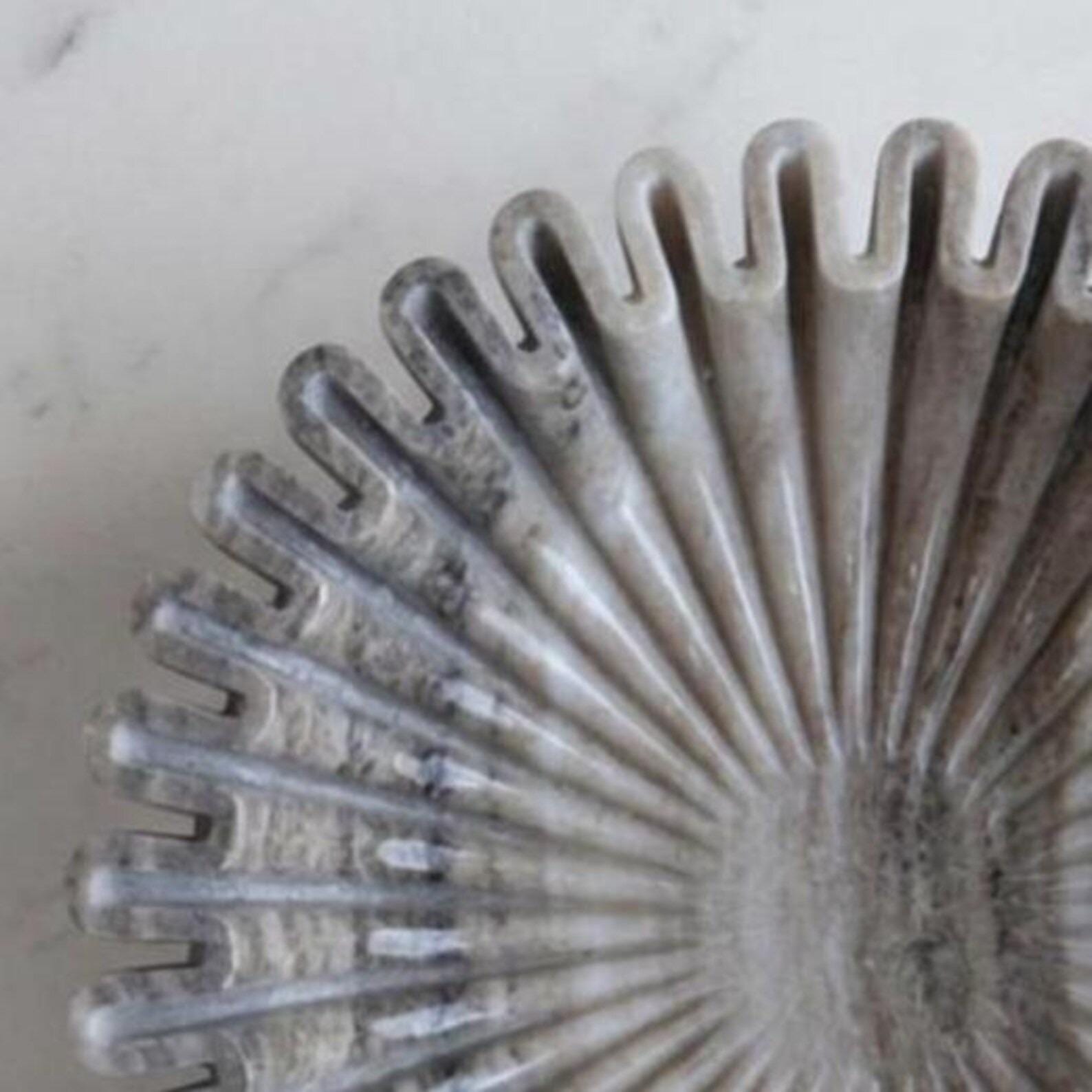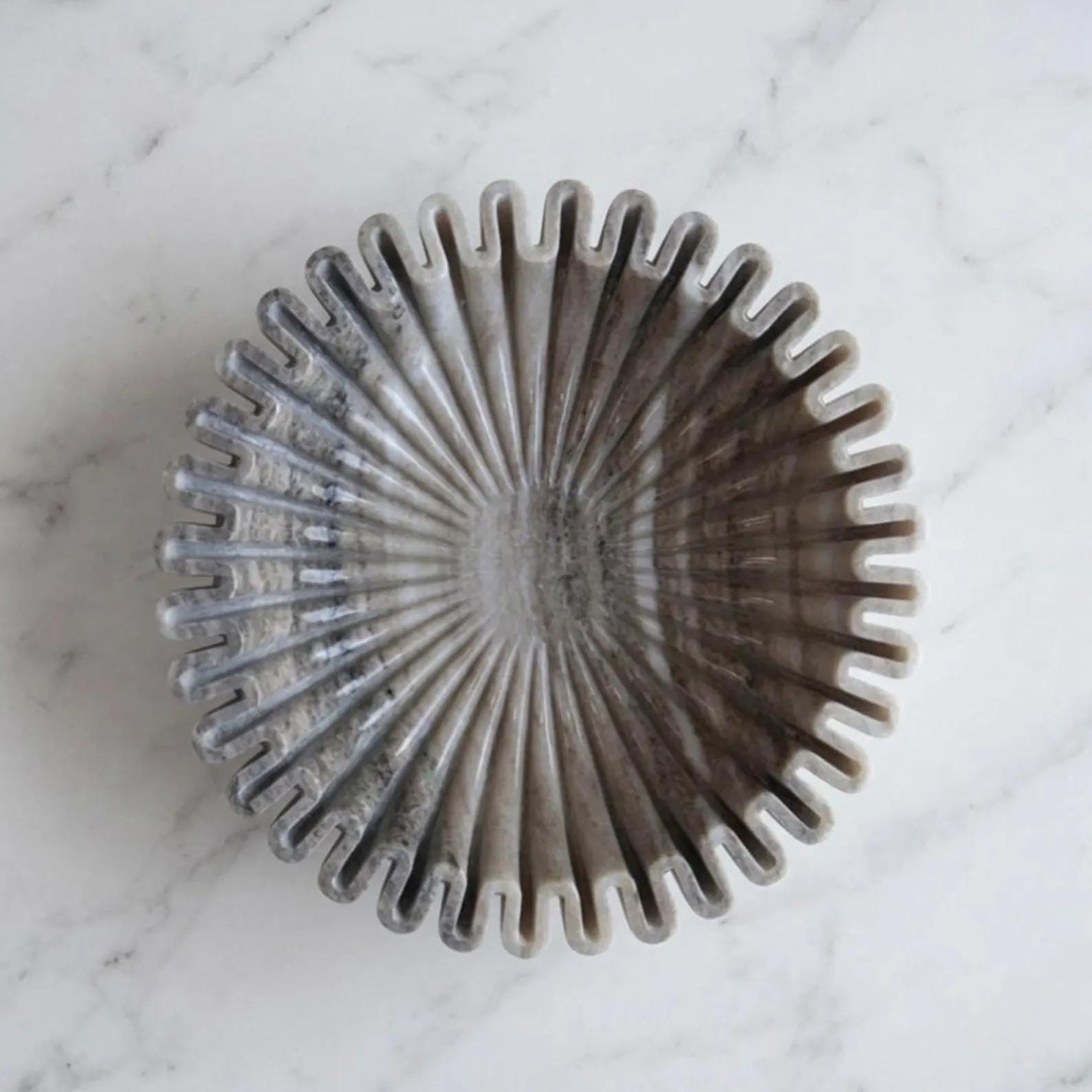 Elevate your home with this beautifully hand-carved marble bowl, designed to be both functional and sculptural. Featuring a distinctive fluted edge and radial pattern, this piece brings texture, depth, and artistry to any space.
