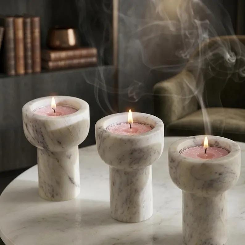 Bring warmth and sophistication to your space with this set of three marble candle holders, designed to blend natural beauty with modern elegance. Perfect for creating a calming ambiance, these sculptural pieces elevate any room with their timeless appeal.