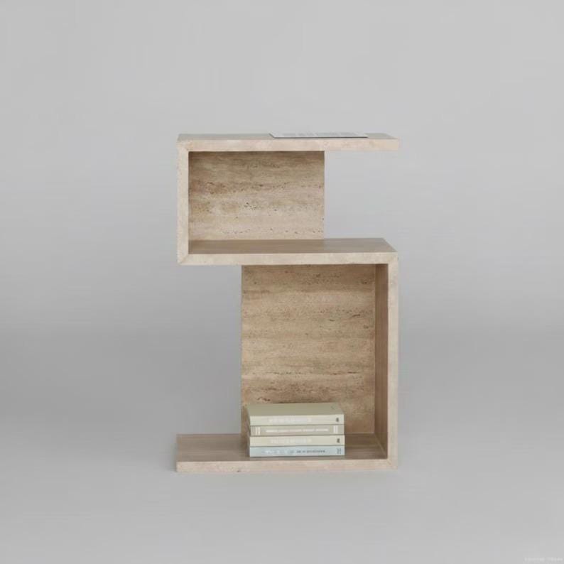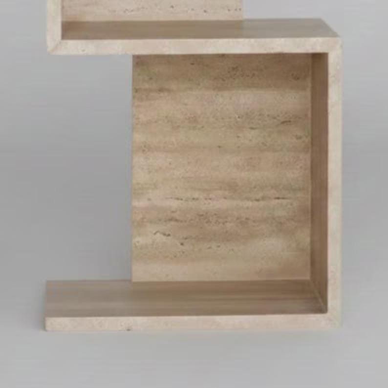 Elevate your interior with this modern S-shaped travertine side table, a perfect fusion of sculptural design and natural elegance. Its flowing, stacked silhouette creates a bold yet balanced look, making it both a functional piece and a statement accent.