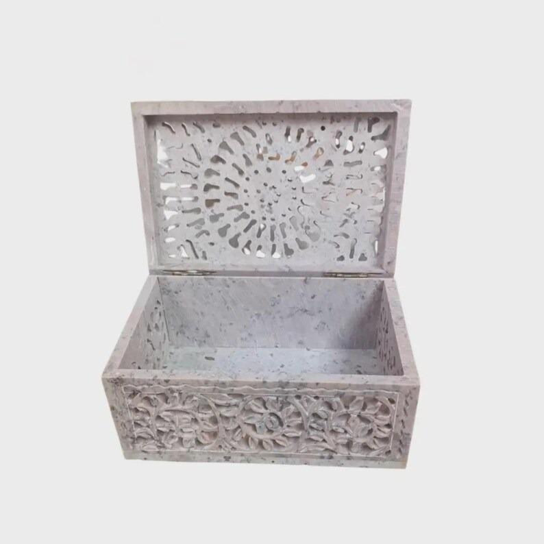 Soapstone is prized for its smooth, velvety texture and durability, making it ideal for fine carving. Its natural off-white tone carries subtle variations and organic character, ensuring that no two boxes are exactly alike. Over time, the stone develops a gentle patina, enhancing its beauty and uniqueness.