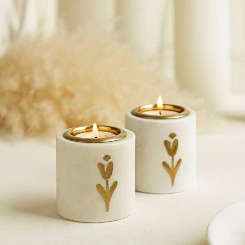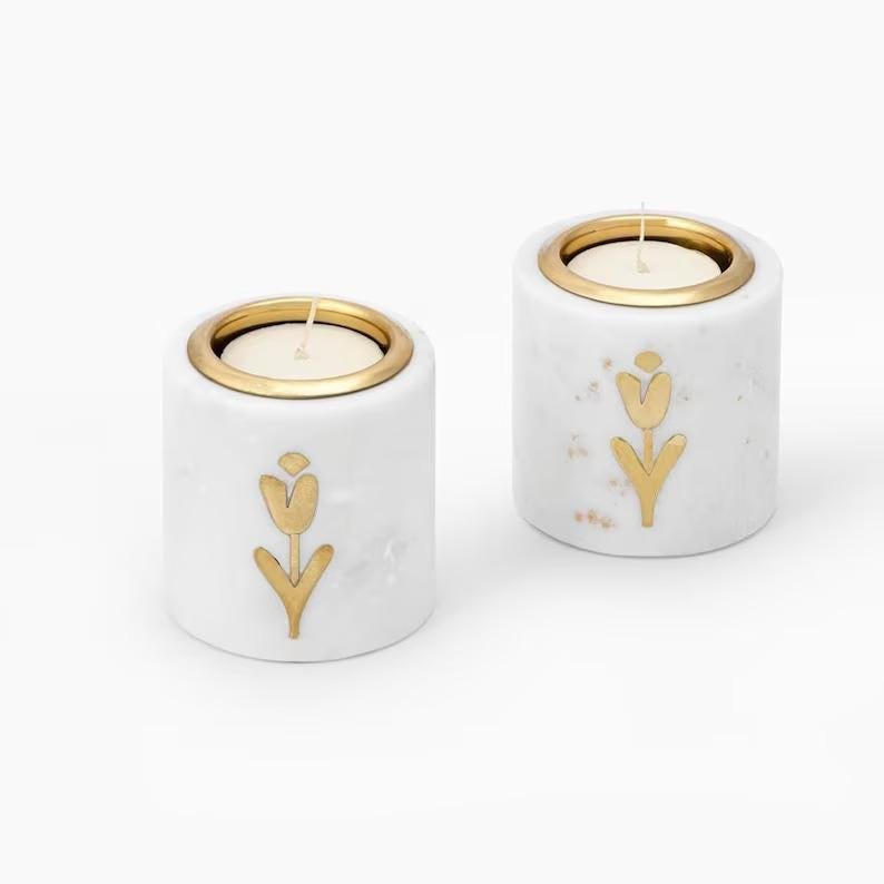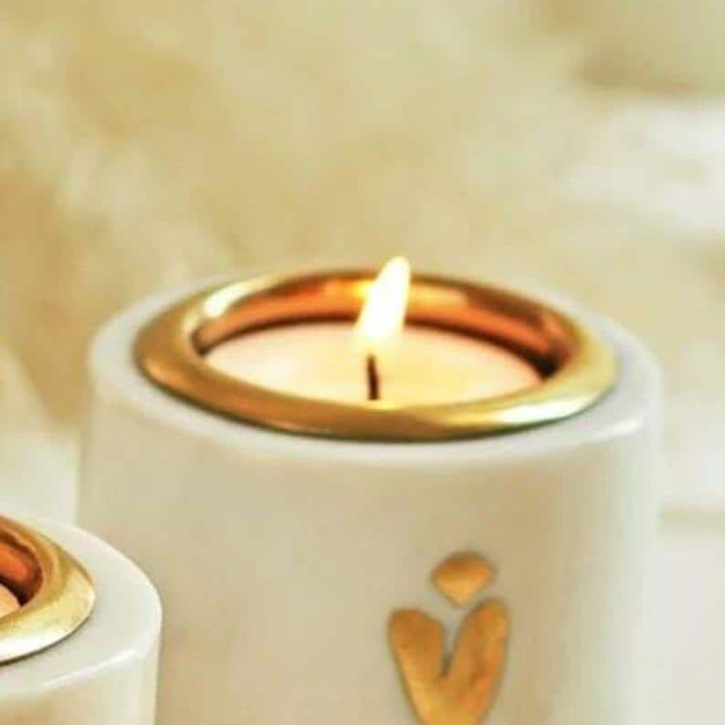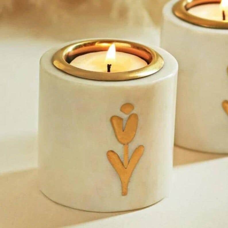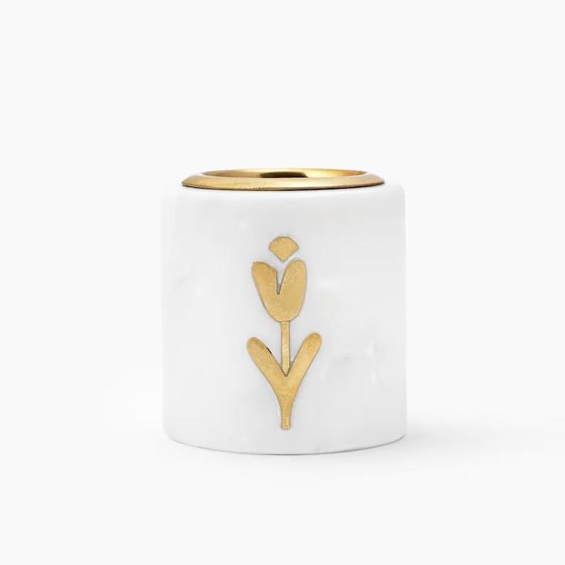 Elevate your space with the timeless beauty of this white marble tealight holder, thoughtfully designed with a warm brass accent for a refined, modern look. Crafted from natural marble, each piece showcases subtle veining and organic variations, making every holder uniquely one-of-a-kind.