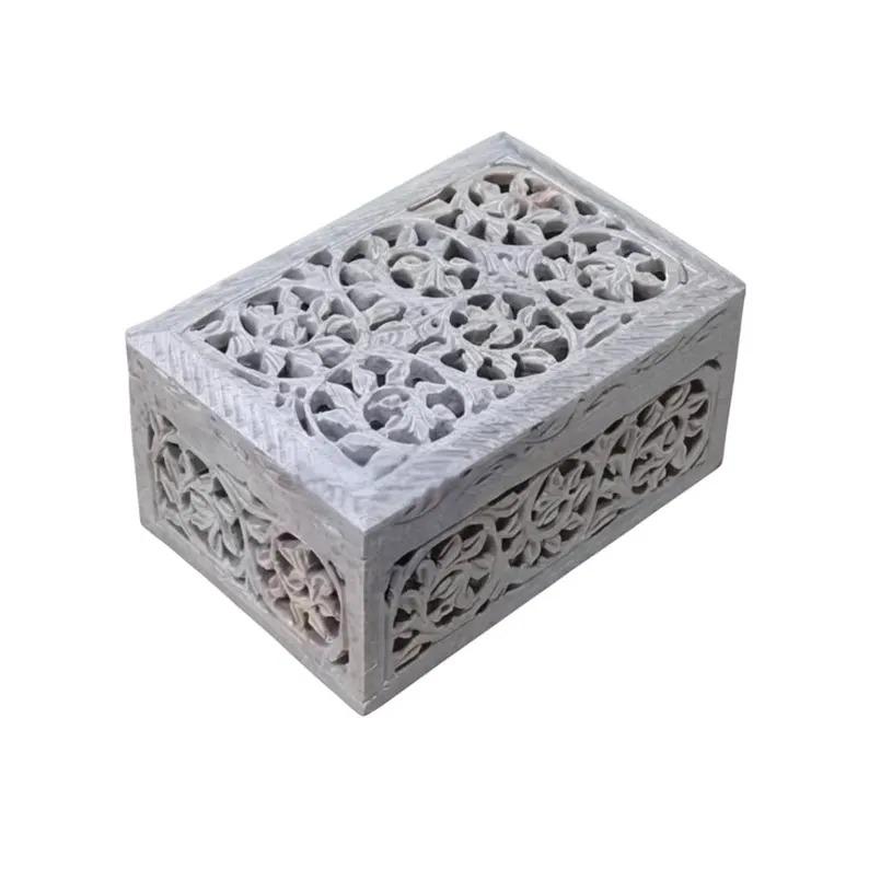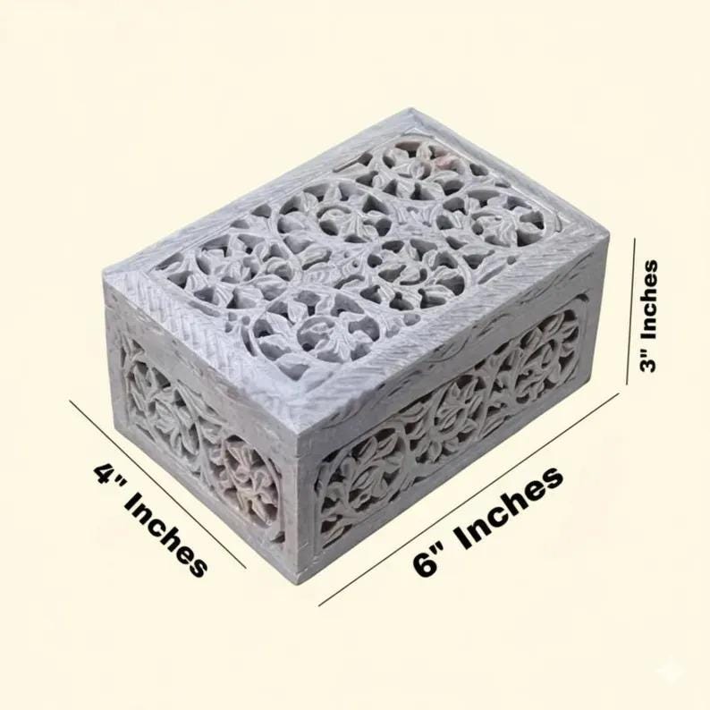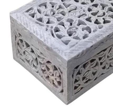 Each box is one-of-a-kind, with slight variations in color and carving due to the natural stone and handmade process.
