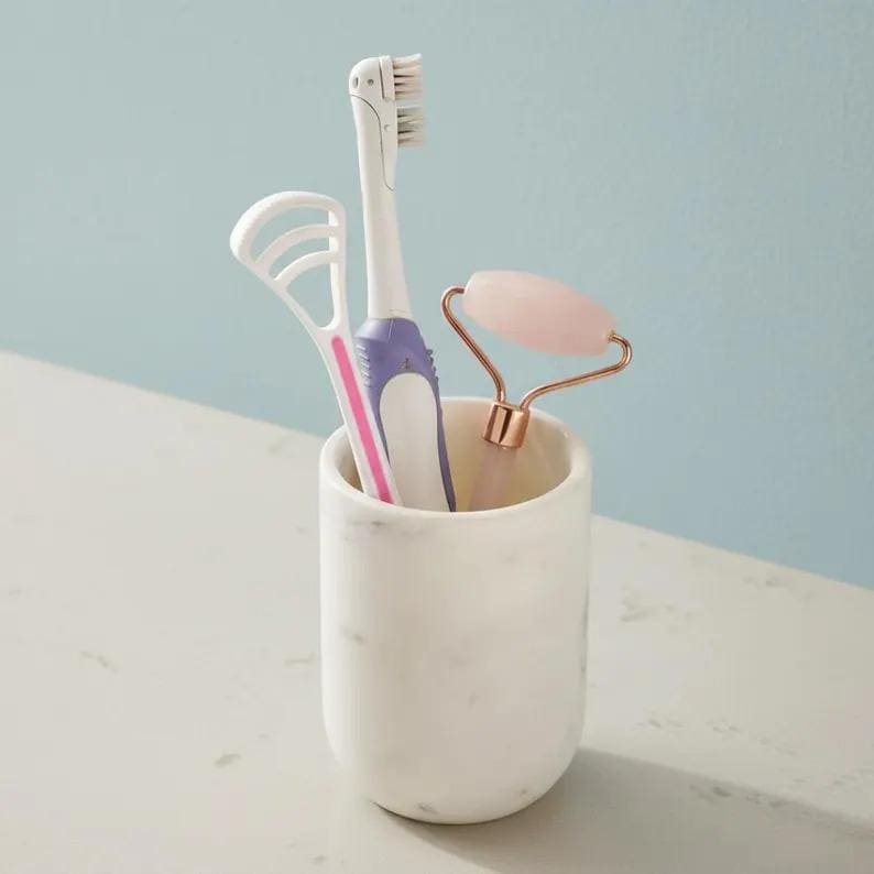 Crafted with a smooth, stone-like finish, this versatile holder is ideal for organizing essentials like toothbrushes, facial tools, razors, or makeup brushes. Whether placed on a bathroom counter or vanity, it adds a calm, clutter-free feel to your space.