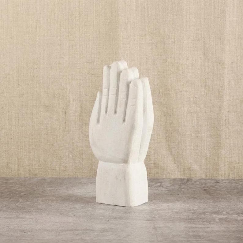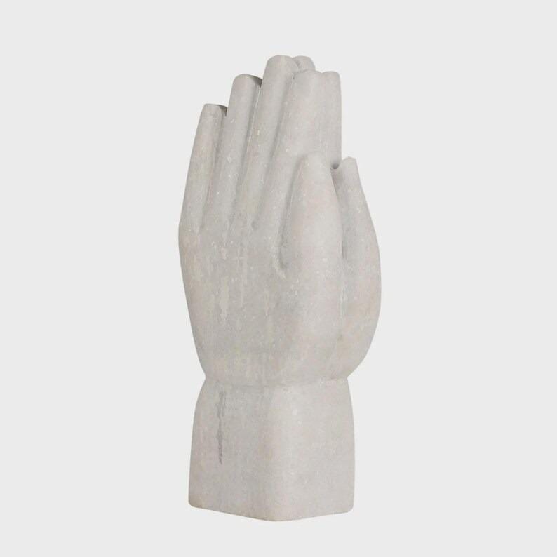 Introduce a sense of serenity and timeless elegance to your space with this beautifully crafted white marble praying hands sculpture. Carved from genuine marble, each piece features unique natural veining, making it a one-of-a-kind work of art.