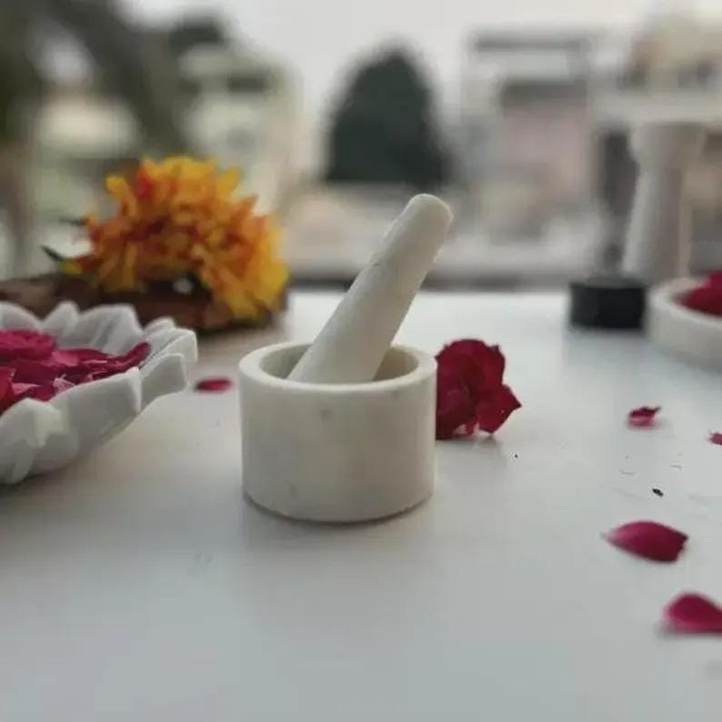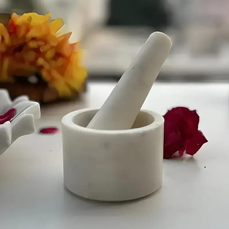 This compact marble mortar and pestle is a timeless kitchen essential—functional, beautiful, and built to last.