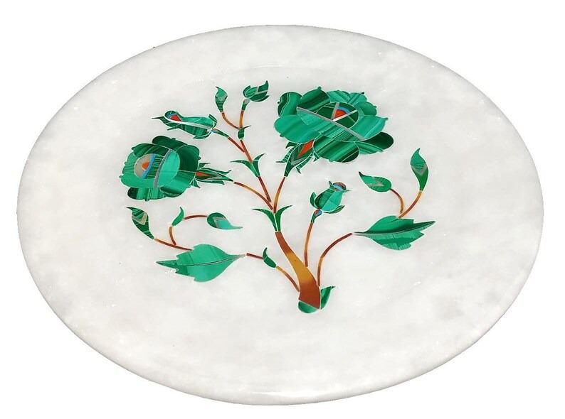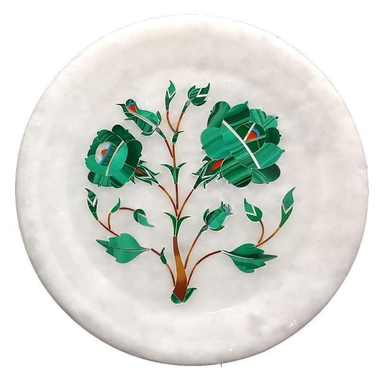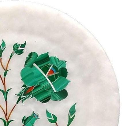 Showcase timeless craftsmanship with this elegant white marble inlay plate, featuring a delicate floral design created using the traditional Pietra Dura technique. Each detail is meticulously handcrafted by skilled artisans, embedding semi-precious stones into smooth marble to form a vibrant botanical motif.