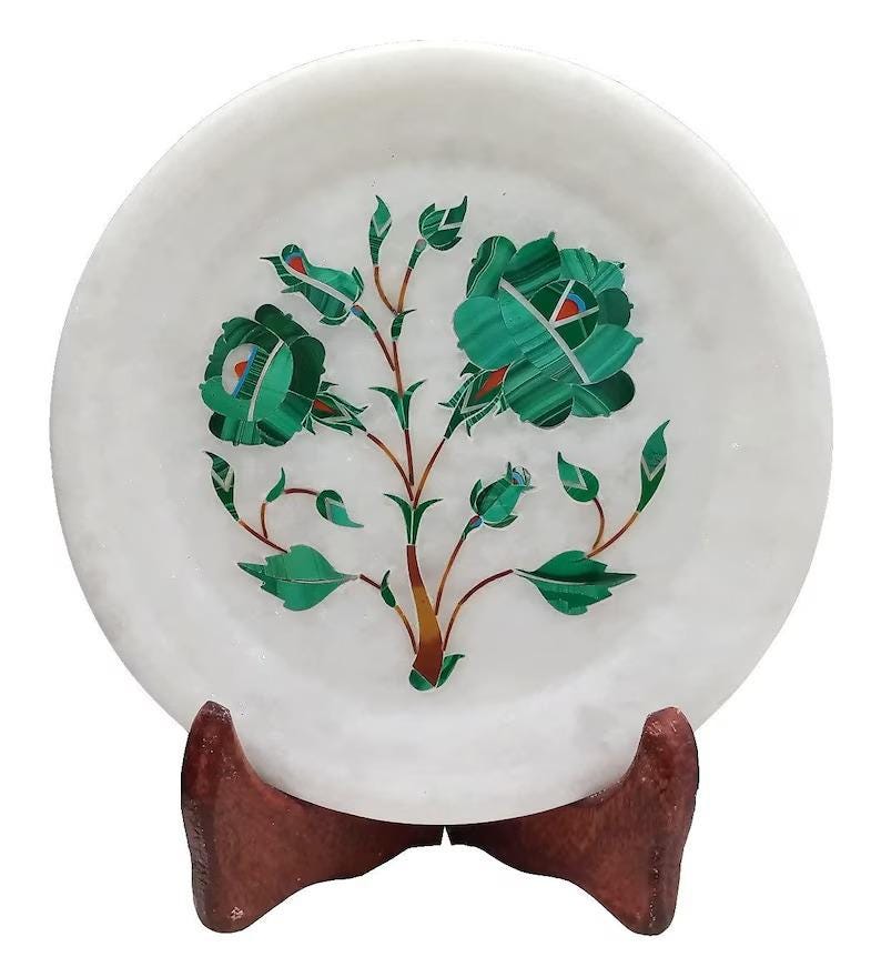 Stone Inlay Decorative Plate, Marble Wall Decor, Luxury Gift